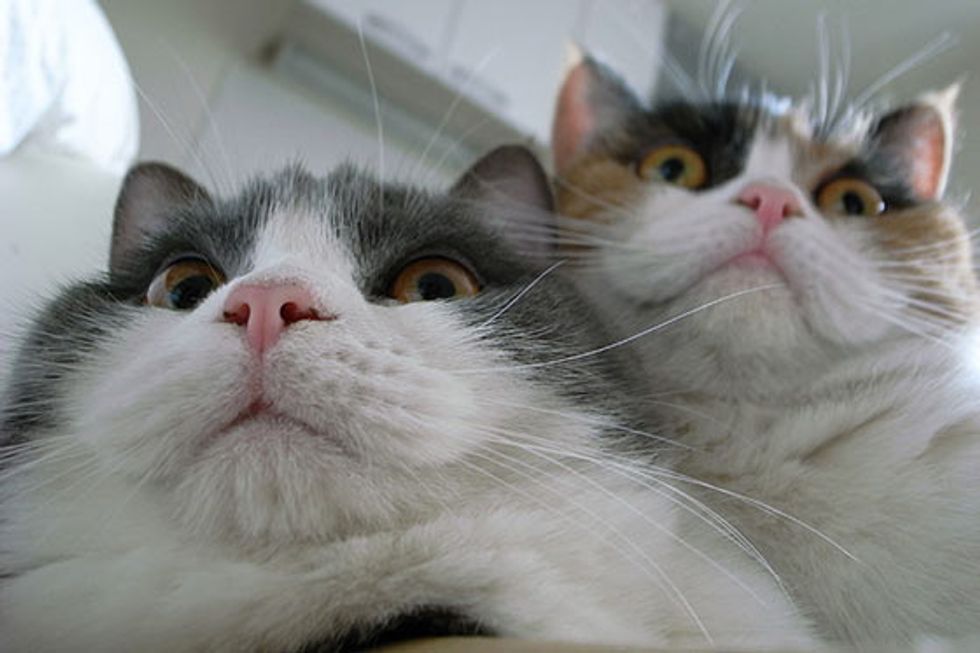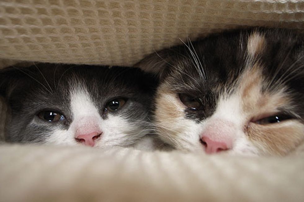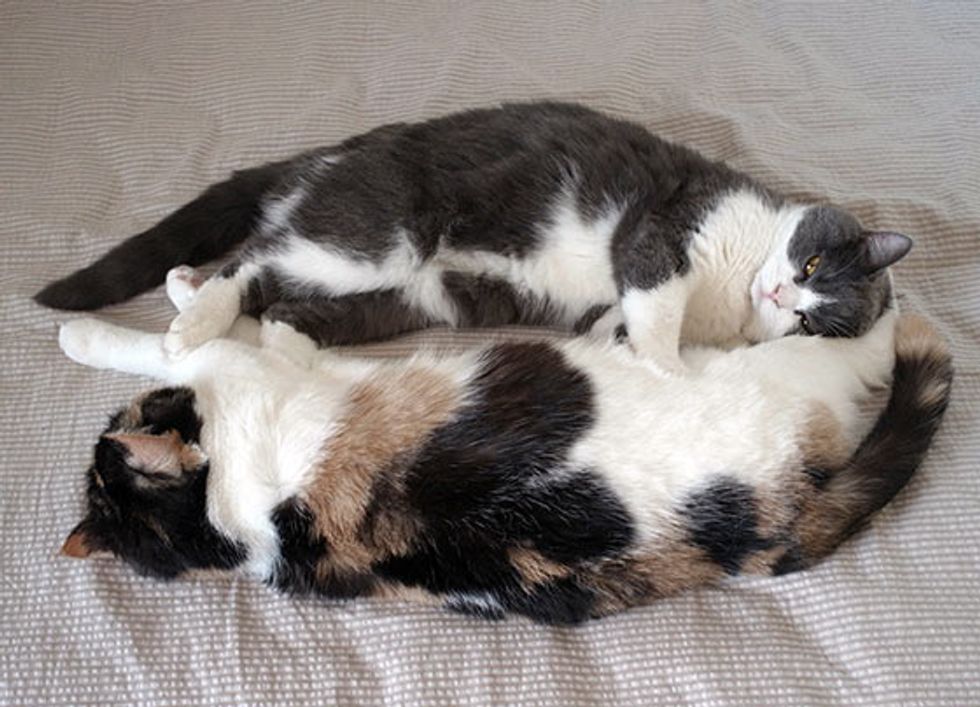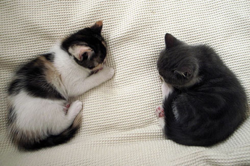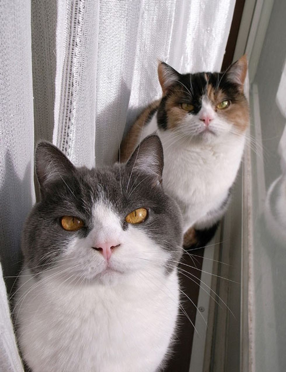 These two perk eared Scottish fold kitties have never been away from each other. They sleep, eat, and play together, even do things in synch. See these then and now photos of the siblings. They are fully grown now, but they still do the same things they did as kittens.
