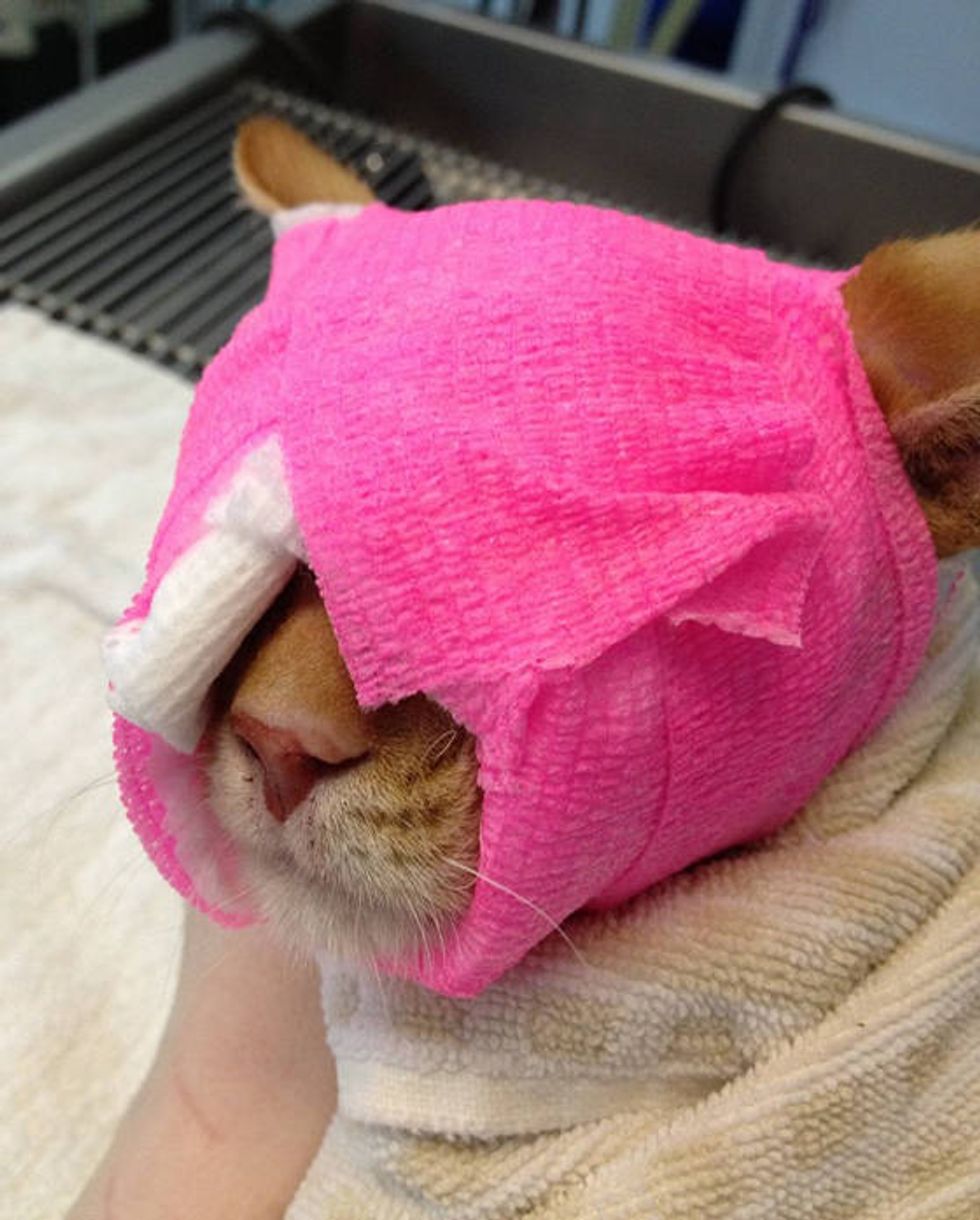 Sprite was born in a feral colony and was taken to an animal hospital when he was still a kitten but infected with severe feline herpes virus. "it's not uncommon for kittens to produce so much infectious eye secretion that their eye(s) seal shut. Everything can build up until the eye ruptures…. When a rescue organization found out he'd lose his eyesight, they opted for euthanasia because he'd be 'too hard' of an adoption," said reddit user raella who gave Sprite a second chance at life and started fostering him.