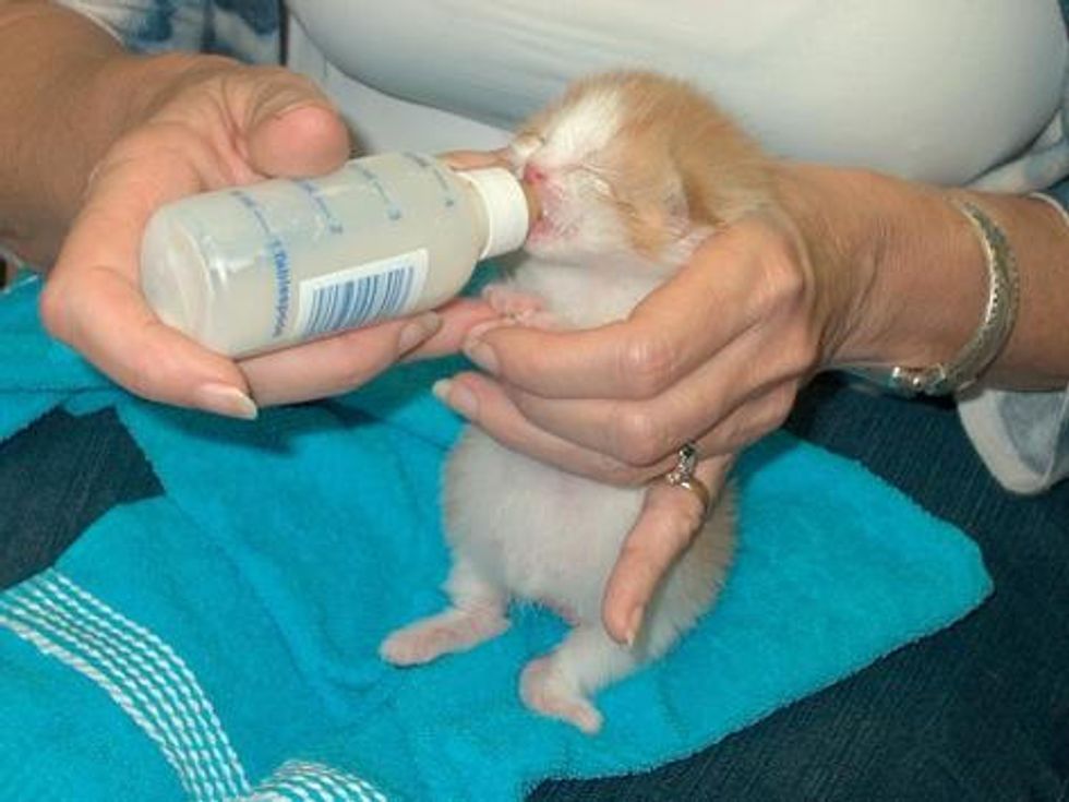 Judy Tate-Gregory is currently fostering the kitten. They named him Ollie. They are feeding him around the clock. When during the day, little Ollie gets to sleep in a comfortable basket in her office.