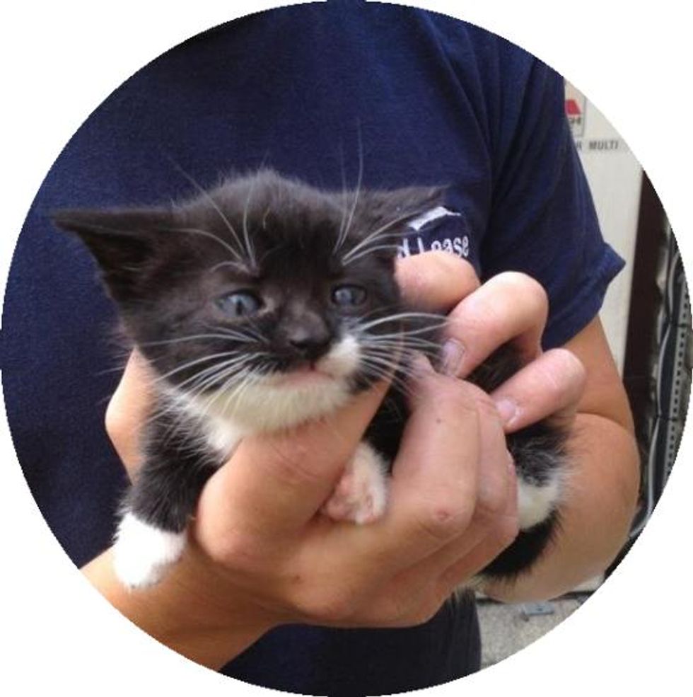 Little tuxedo kitten rescued by a good samaritan