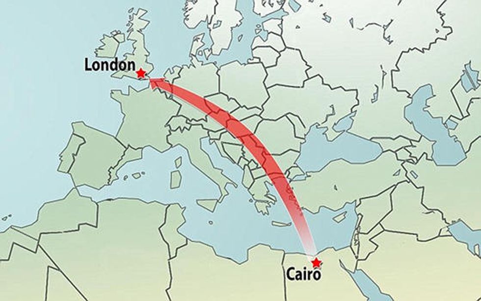from Cairo to London stacked in plane's luggage hold