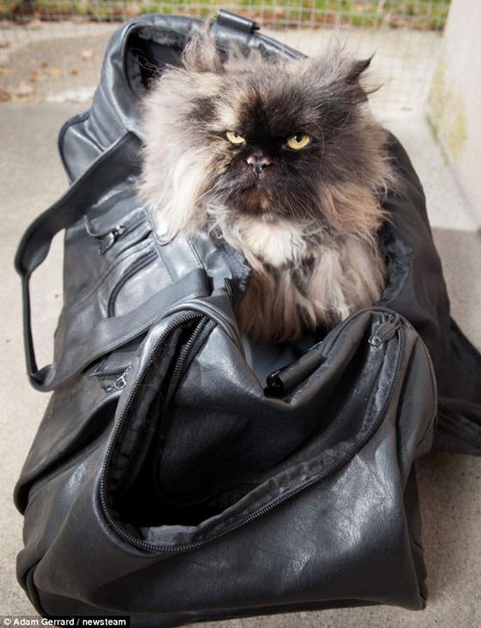 Bisou a 7-year-old Persian cat was accidentally packed inside her owner's suitcase and travelled 3,400 miles from Cairo to London in the plane's luggage hold.