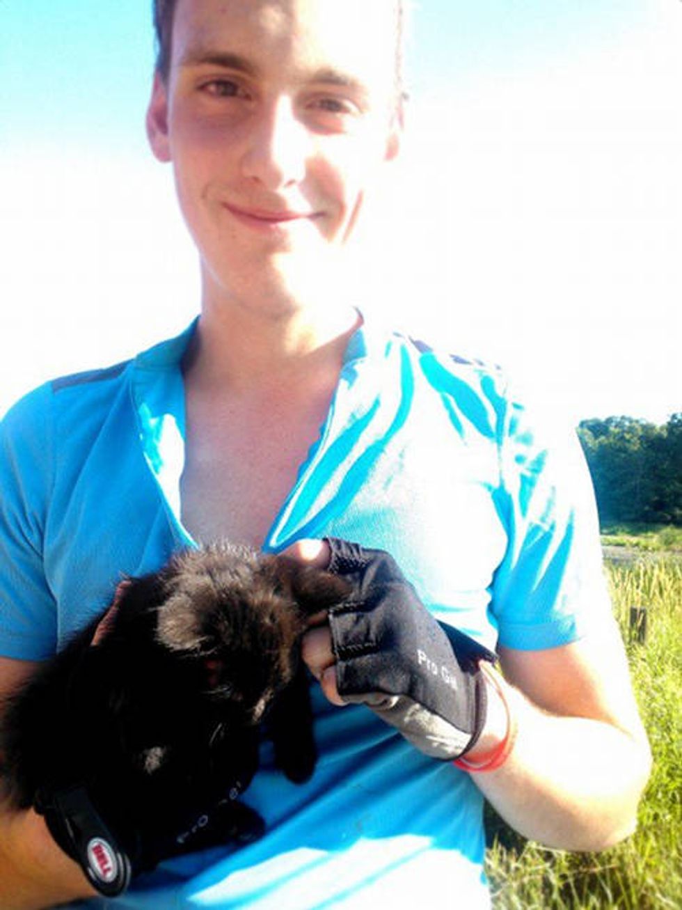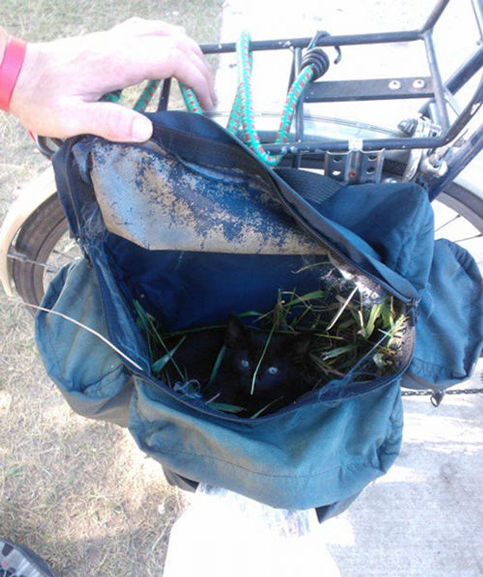 He put the little one in his saddle bag and carried him home on a 30 mile bike ride