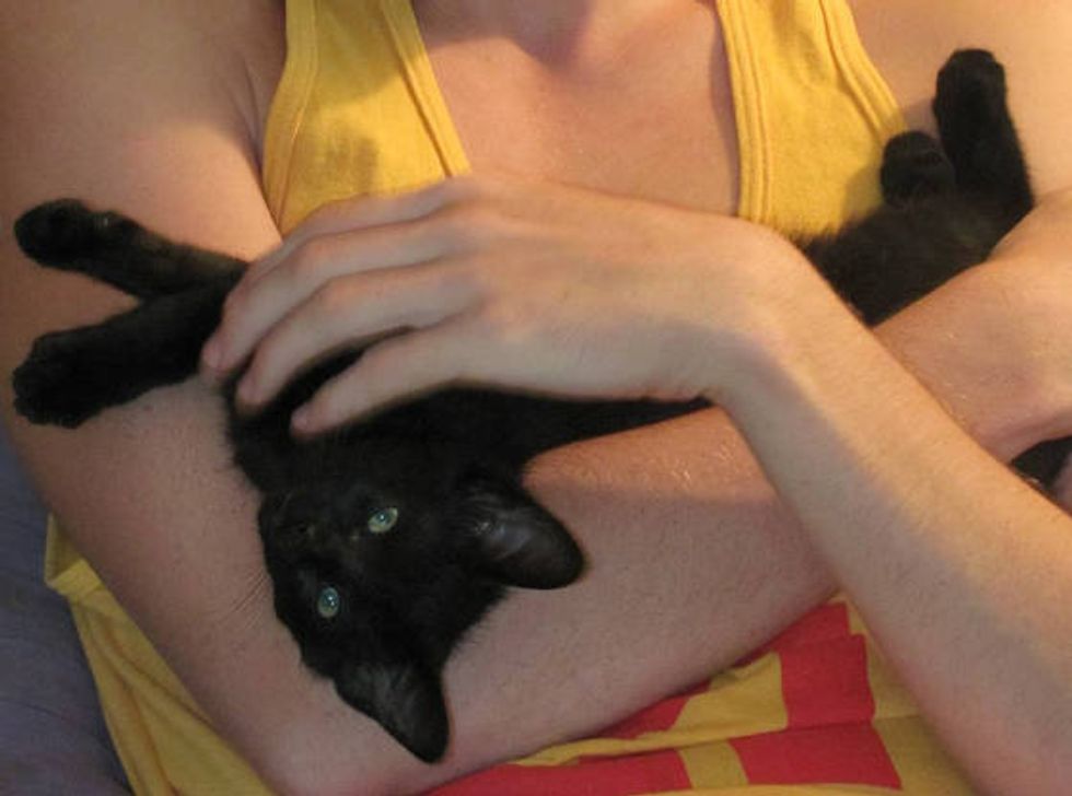 A man found a tiny black kitten 20 miles into a bike ride, and carried him on a 30 mile journey in his saddle bag all the way to his home. He adopted him and named him Maximus.