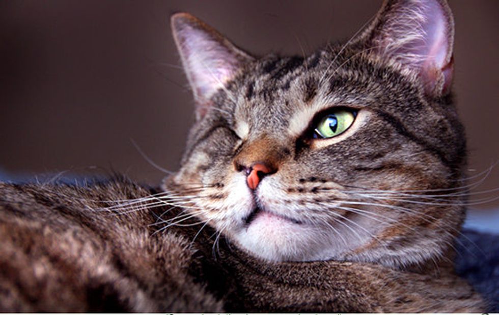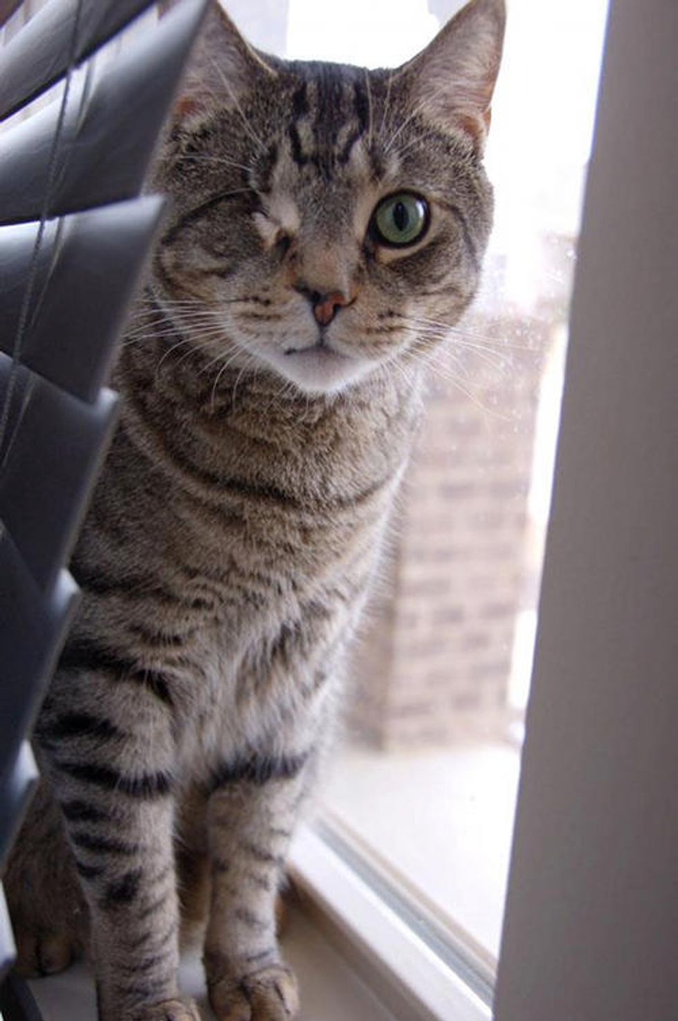 "I saw images of Odin (called 'Winky' by the shelter) on their website in March of 2008, and something about him pulled me. I begged my husband, who at the time didn't want another cat, to at least let me go and take a look at him. He was about a year old at the time and still had the stitches in his eye when he was brought out to us. The woman handed him to my husband and he laid his head against my husband's chest," Hill wrote.
