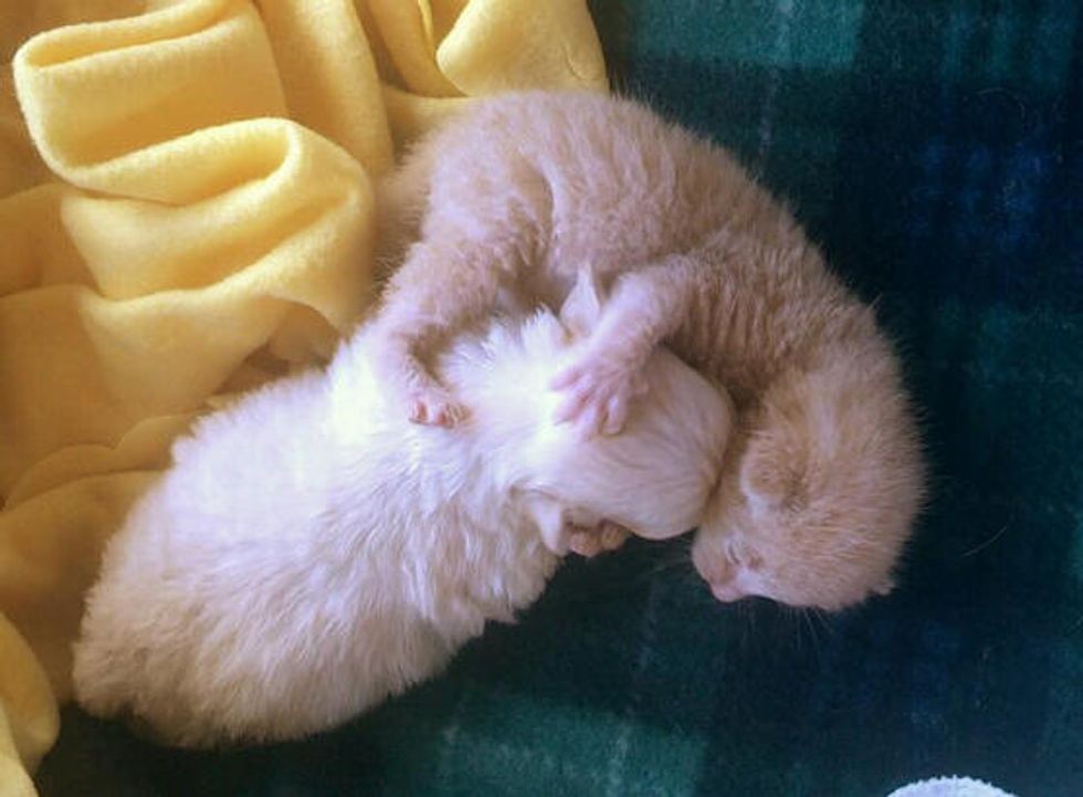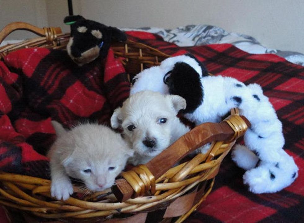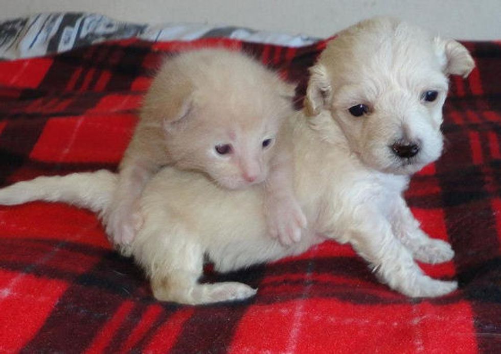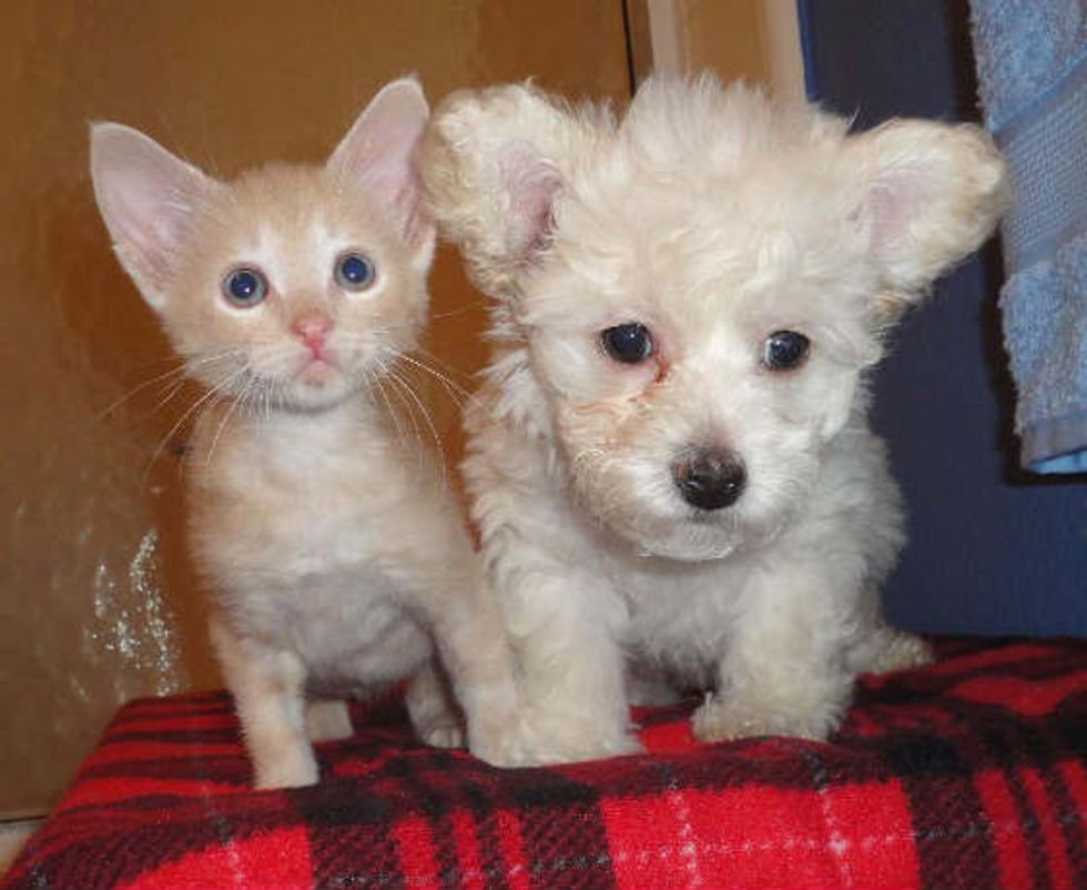Cocoa Puff the kitty and Lacey the pup were saved by Kitten Rescue when they were only a few days old. Their eyes were still closed.