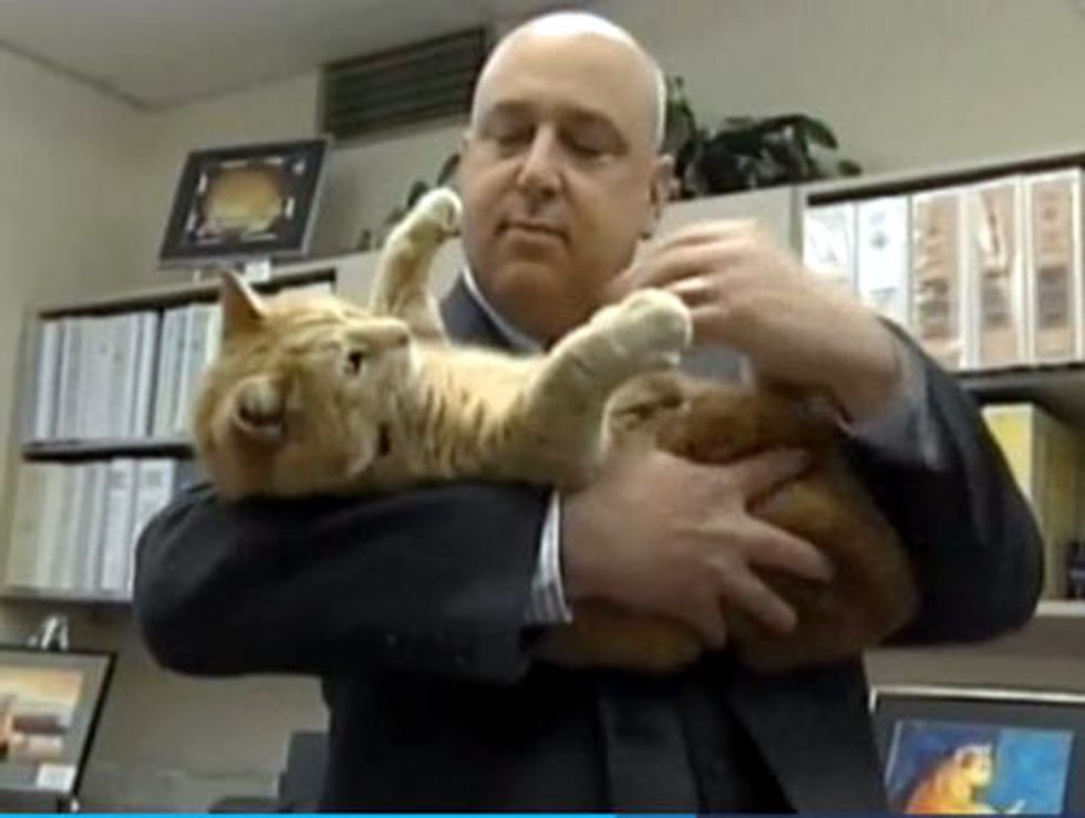 Simba the 15 year old ginger cat hanging out in the superintendent's office.