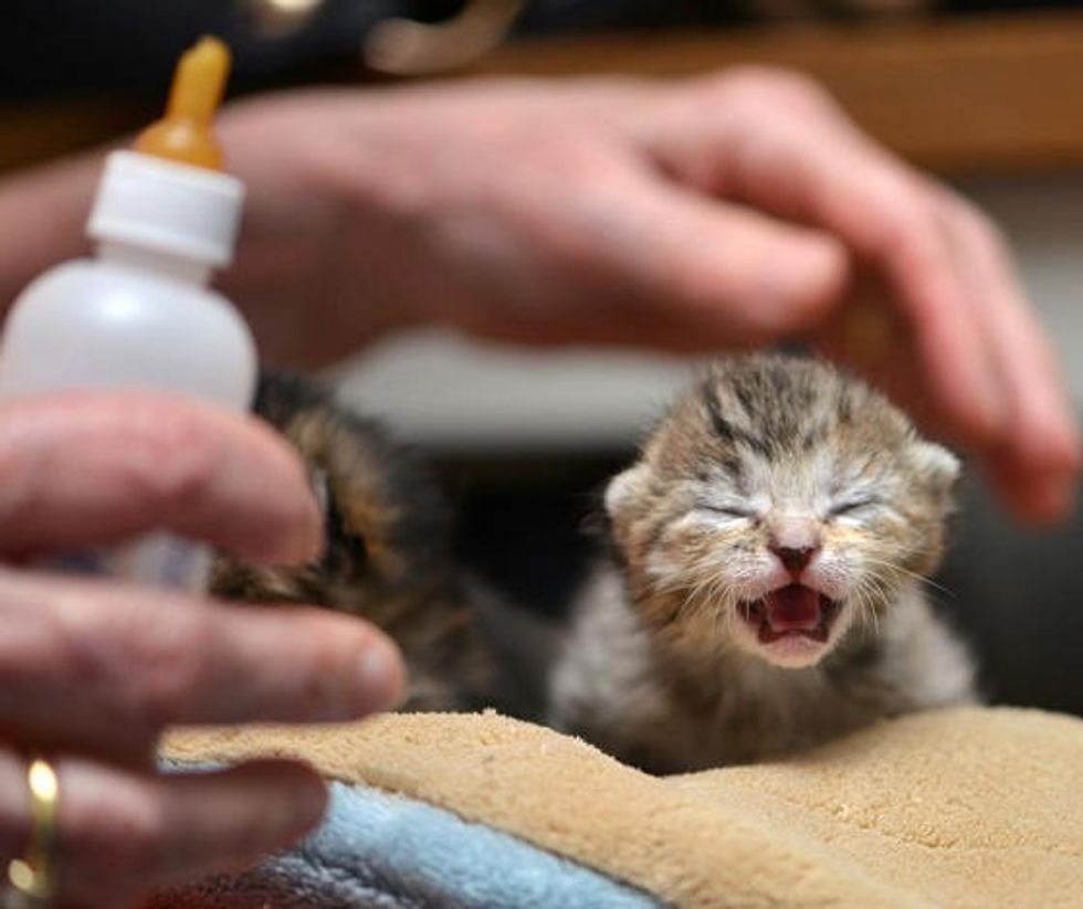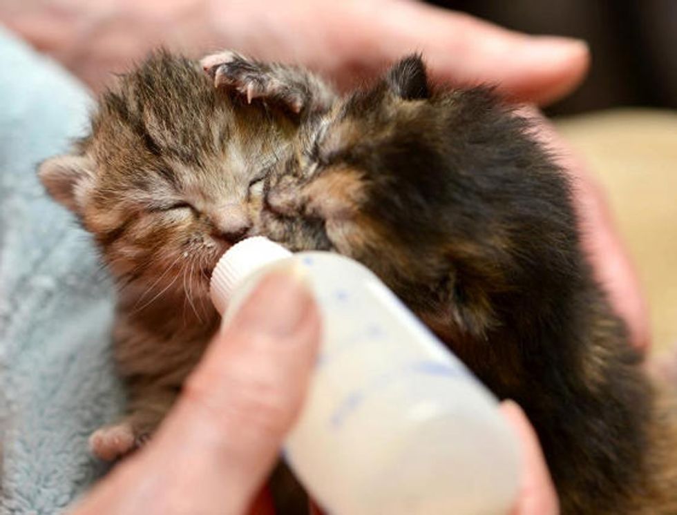 2 tiny orphan kittens taken in by Tonis Kitty Rescue. They are given food and a lot of love.