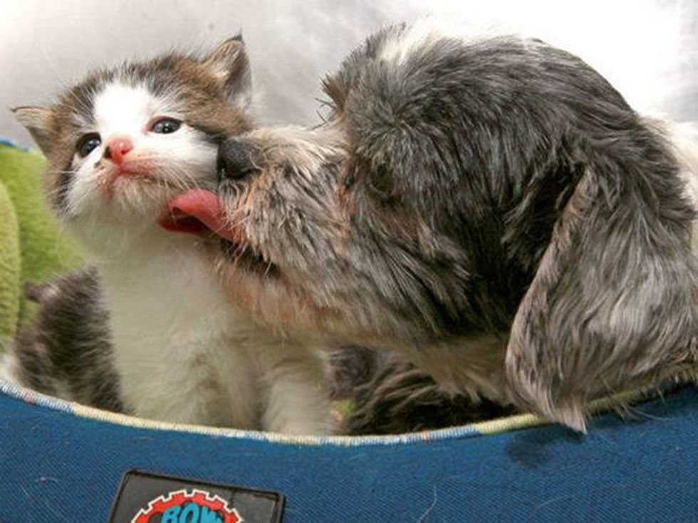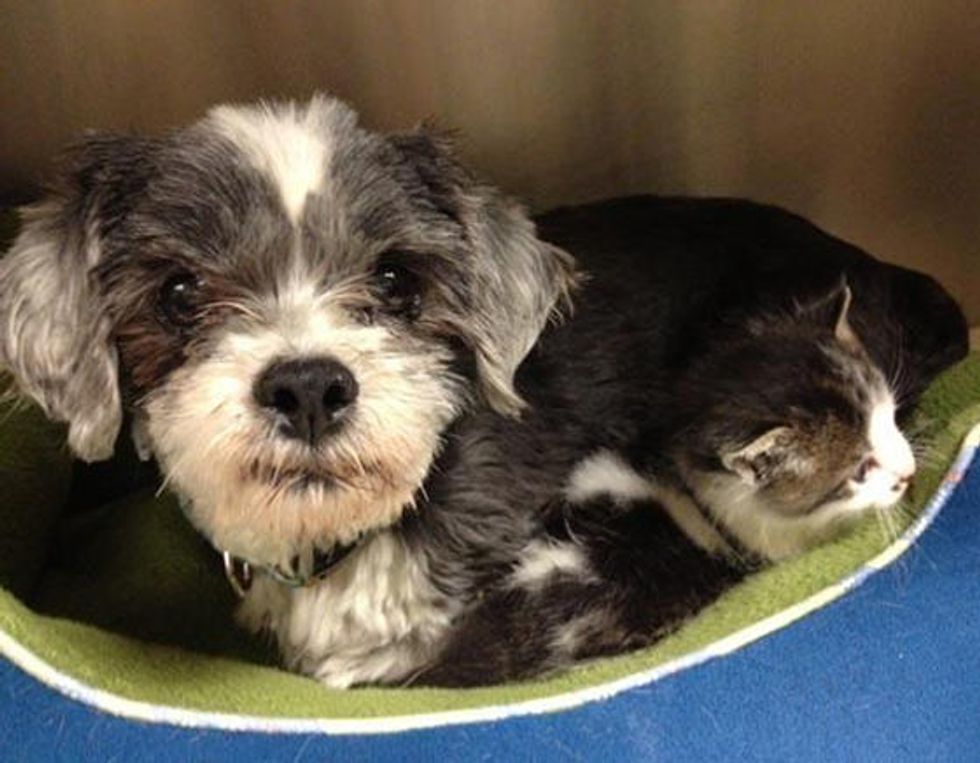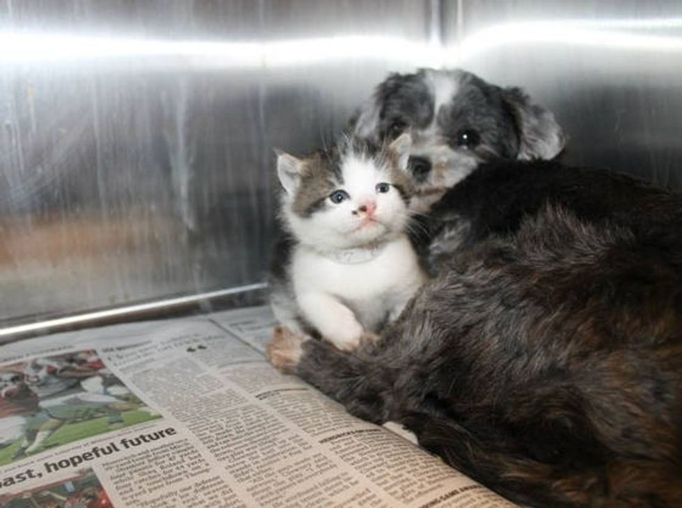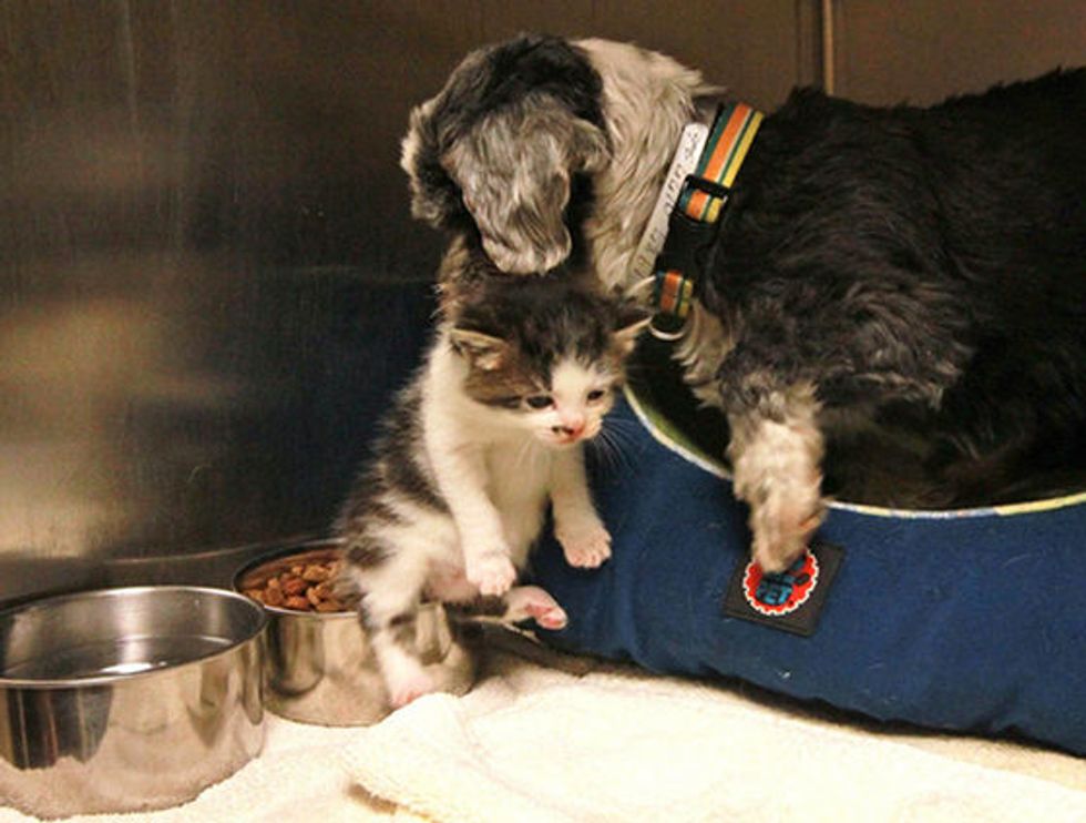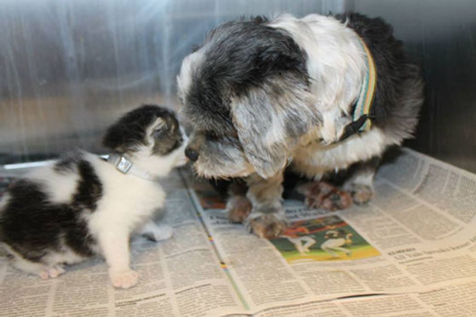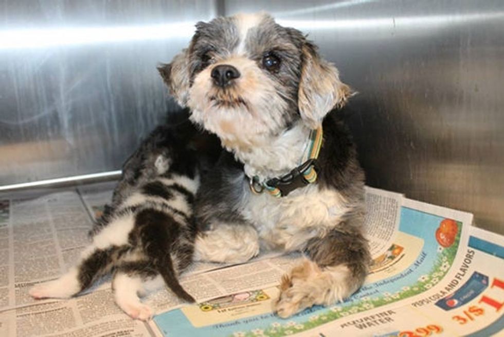 They were taken into Anderson county P.A.W.S. where the dog was taking care of her adopted kitten, nursing and cleaning her like a mother.
