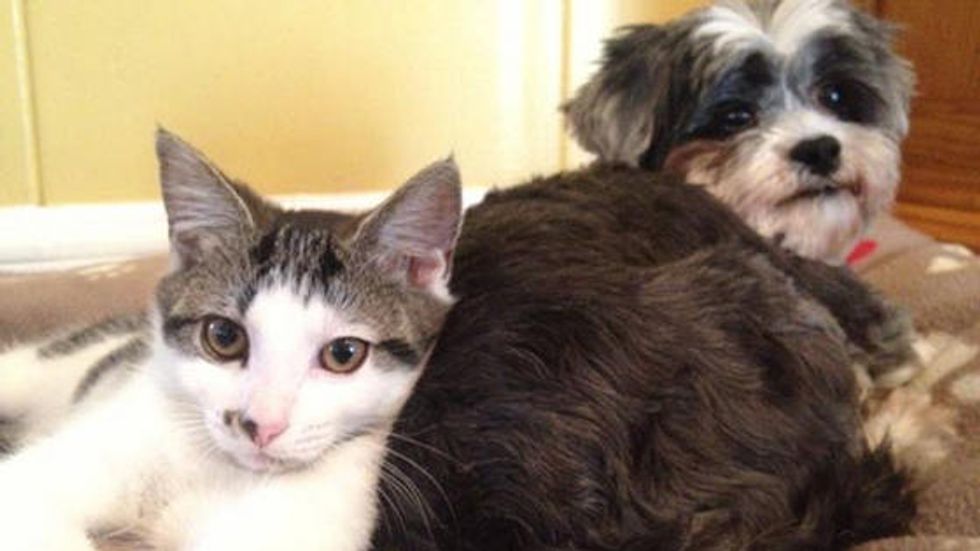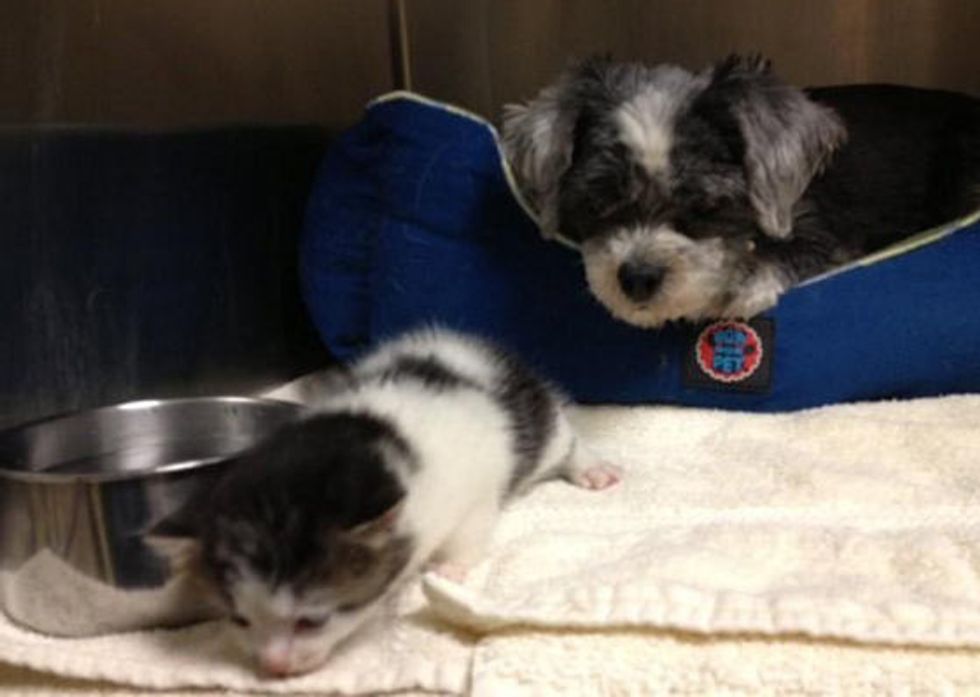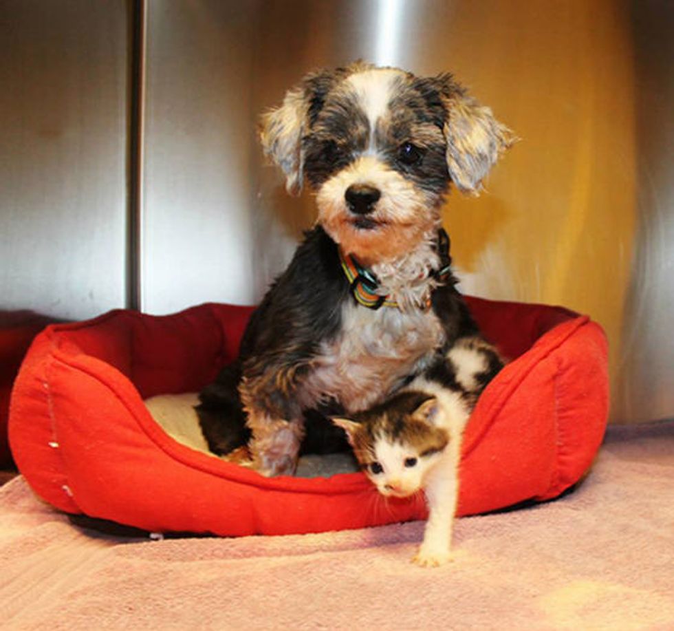 Updates! Kate the kitten and Goldie the dog are now living happily together at their forever loving home! Yay!