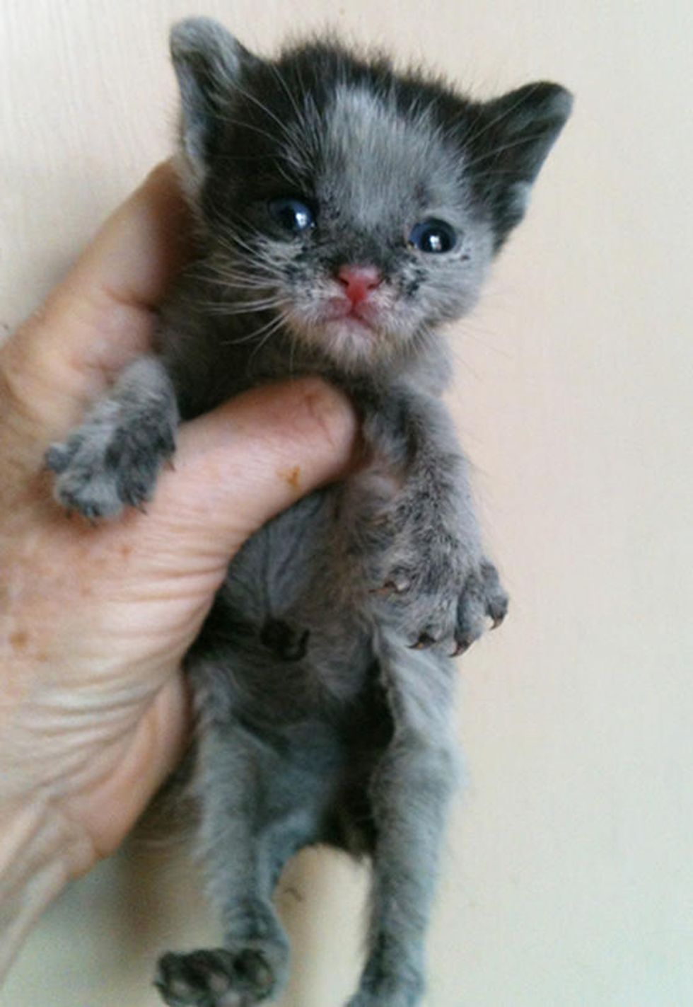 They think Lucky was most likely born blind, but the little guy surely doesn't think he has any physical limitations. With a lot of TLC, Lucky has grown stronger and bigger. It may take him sometime to figure out his surroundings, but Lucky is always happy and doesn't think he is any different.