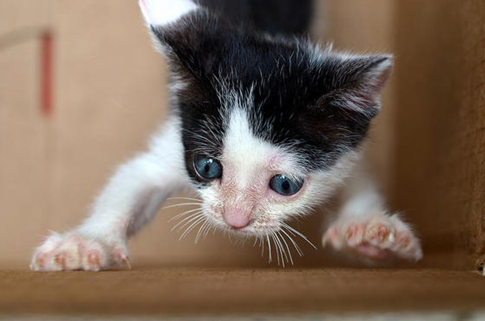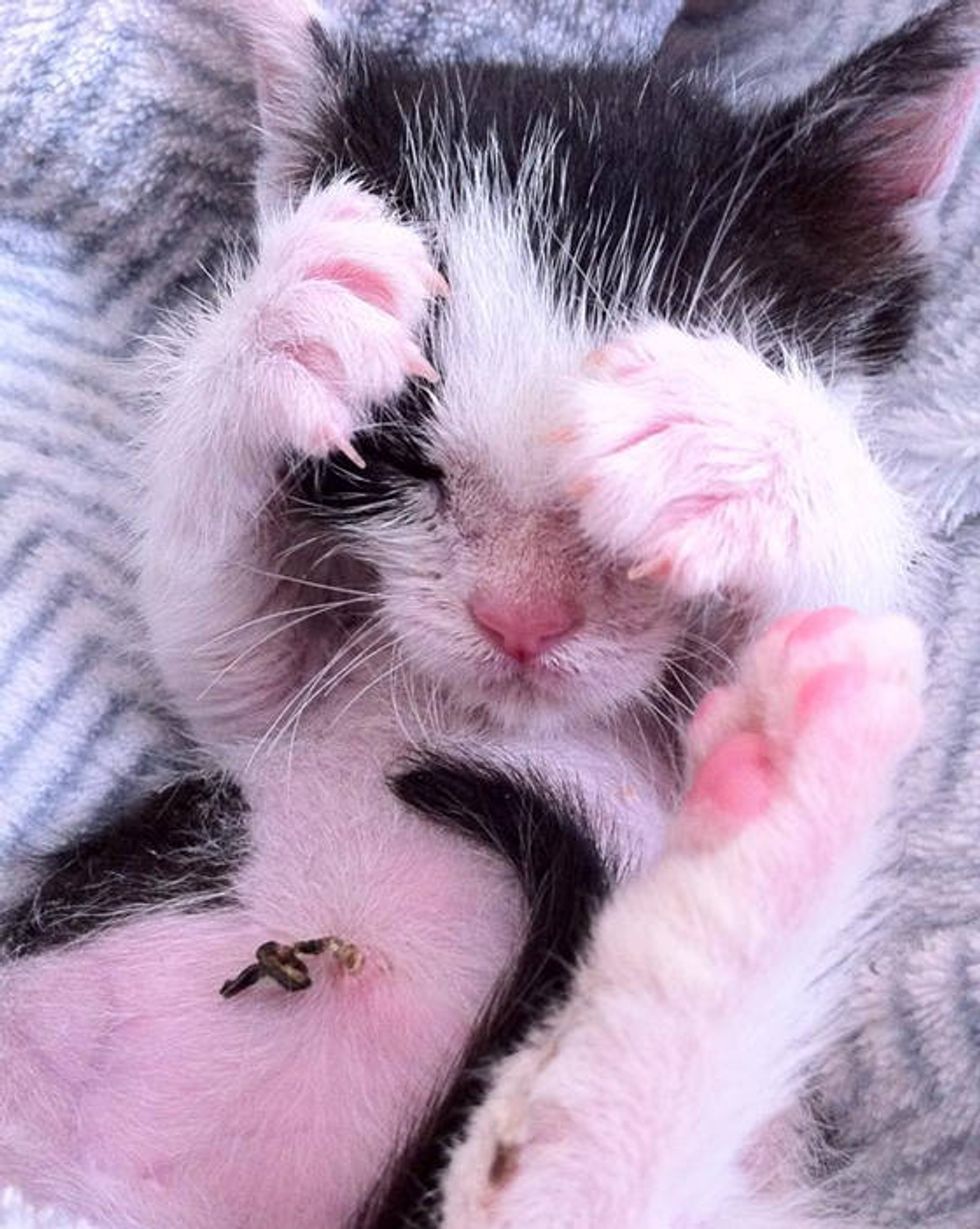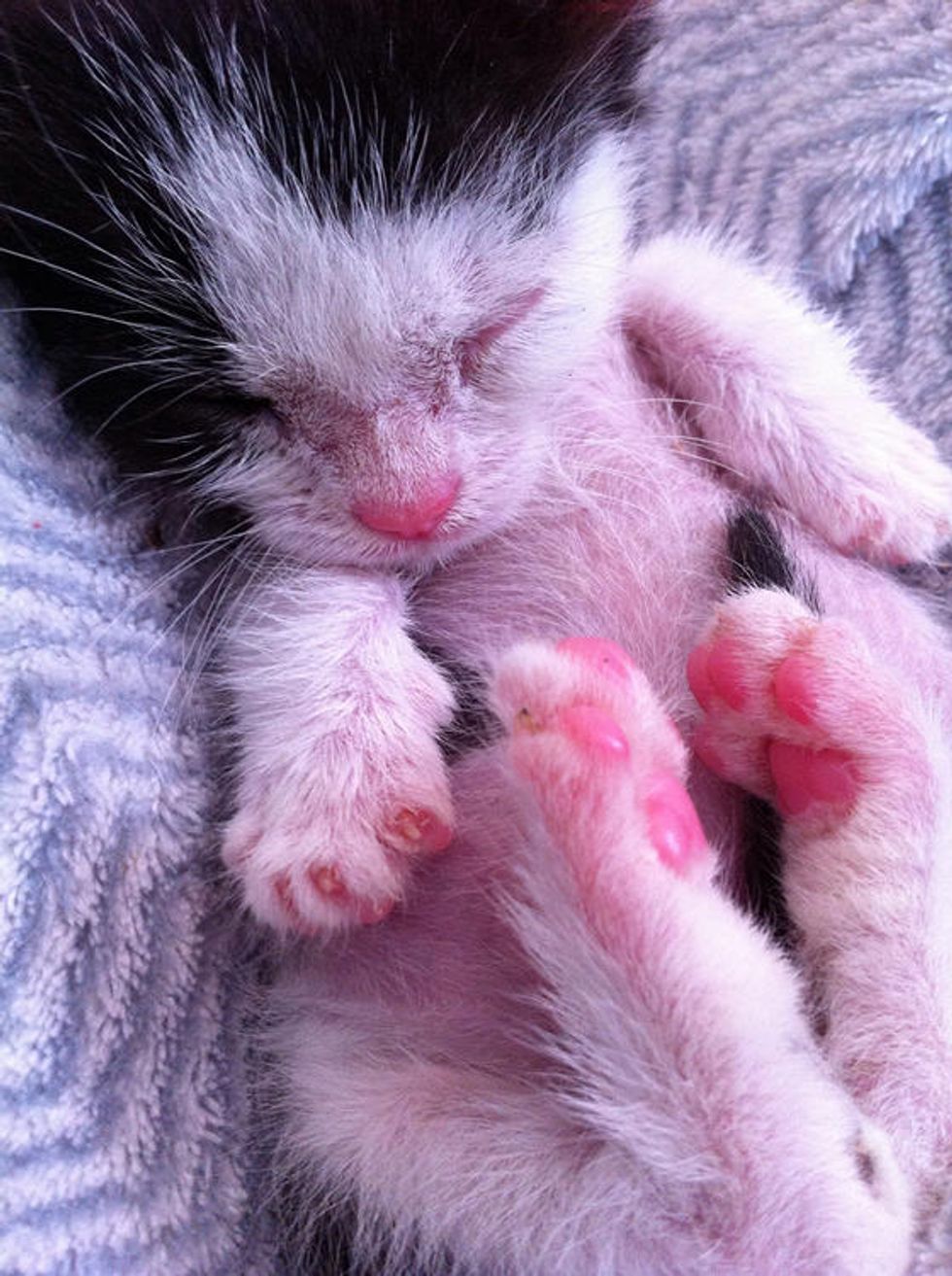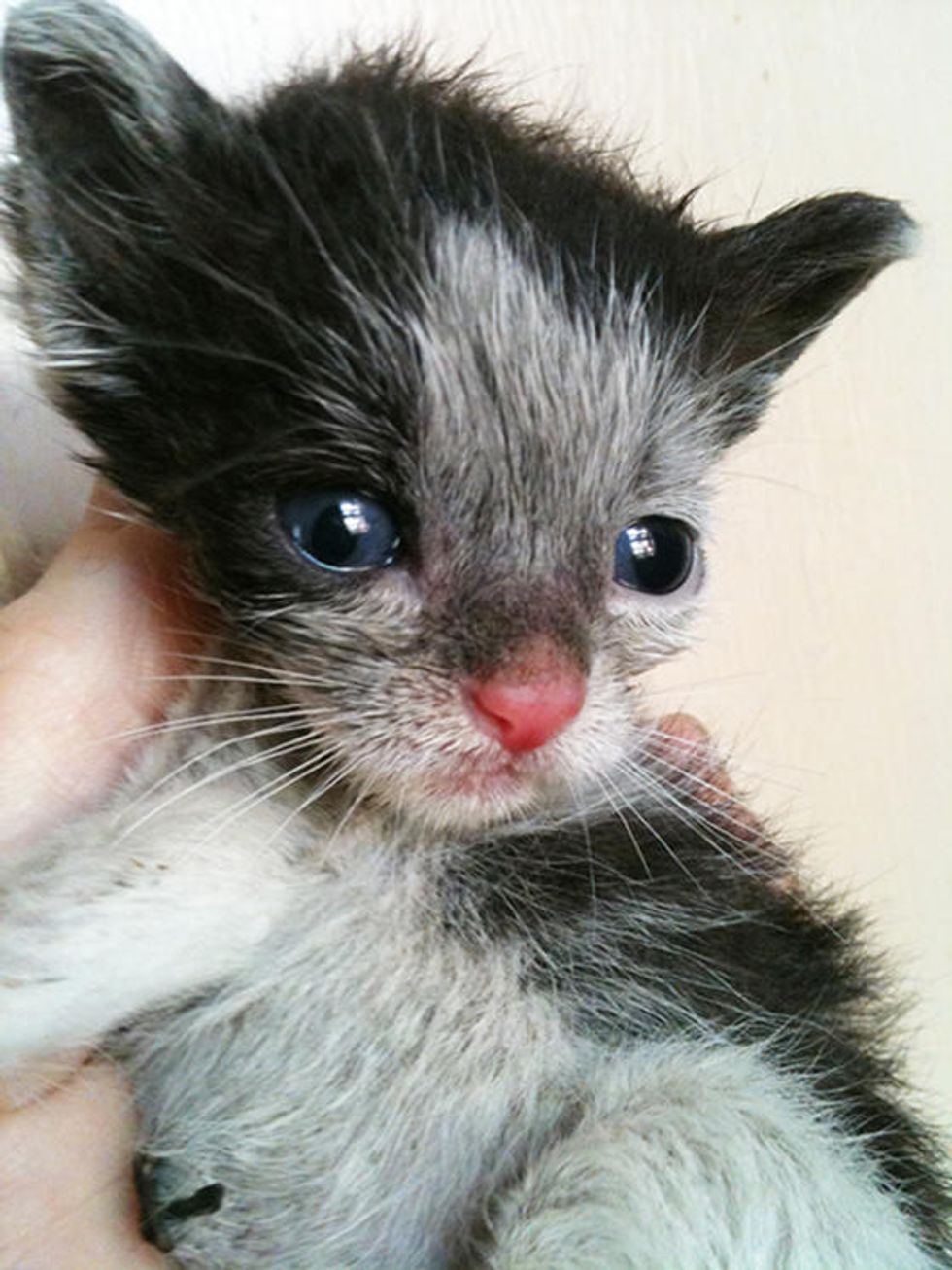 Lucky the kitty has come a long way since he came to Big City Little Kitty. He is completely blind, and when he arrived in his foster home, he was covered in filth.