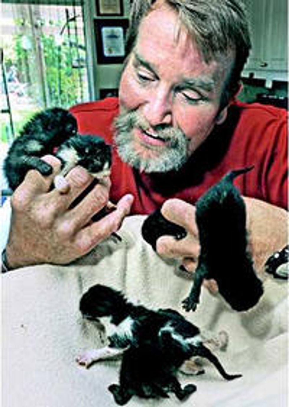 "The best part is that two weeks from now they'll be flying all over the house," Kerr added, as the little bottle fed kitten meowed loudly in his hand.