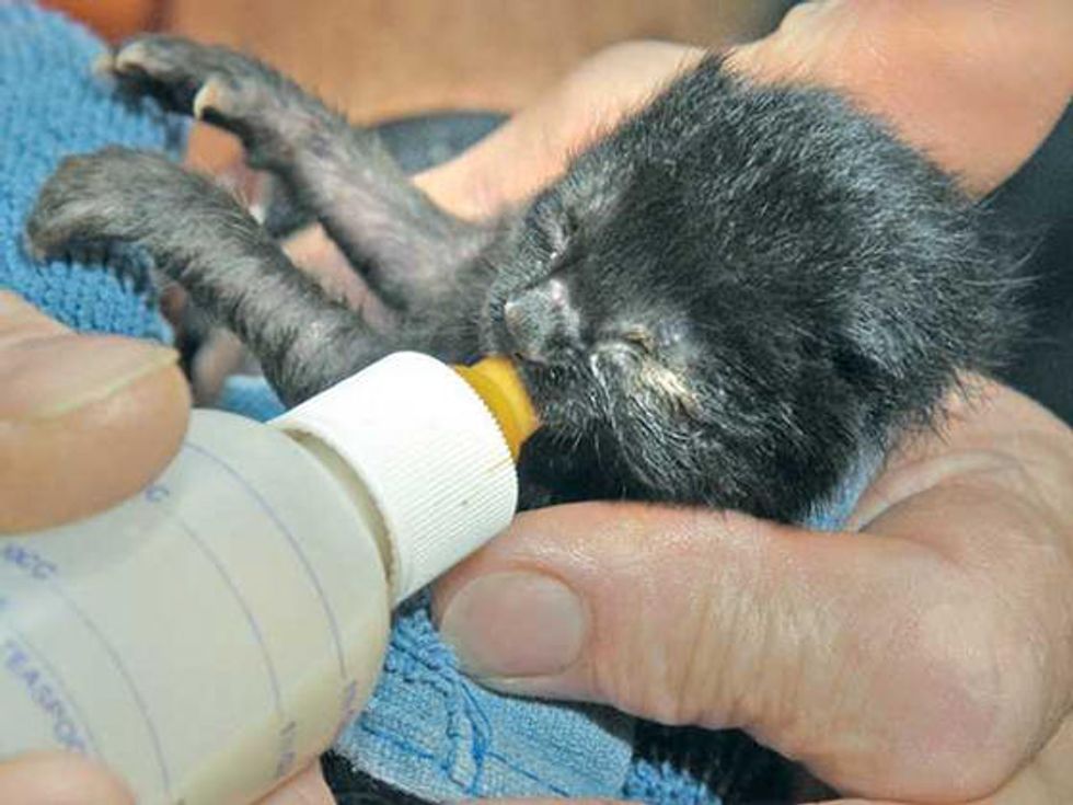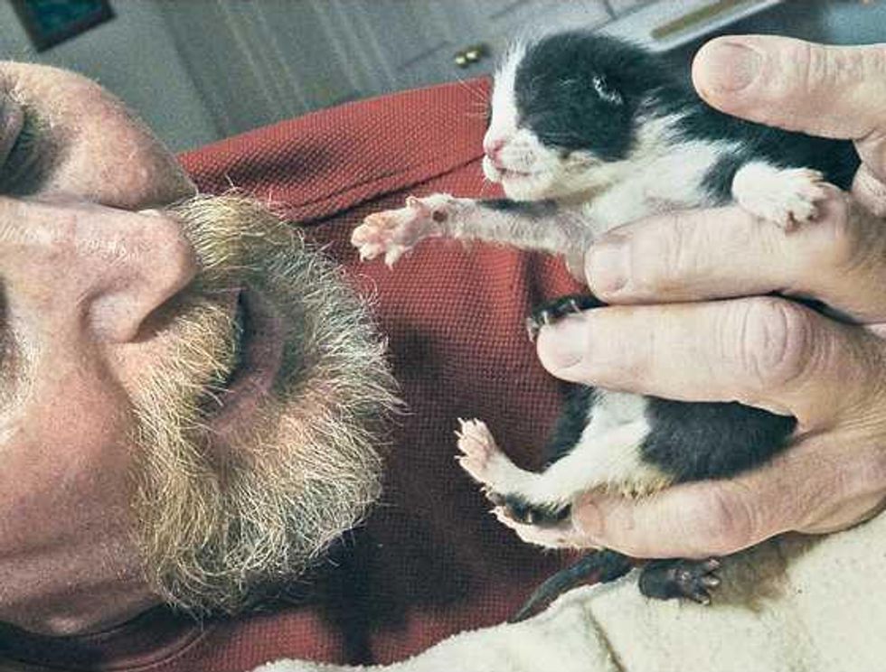 He took the kittens in and immediately started fostering. Baby kittens require feeding and caring around the clock.
