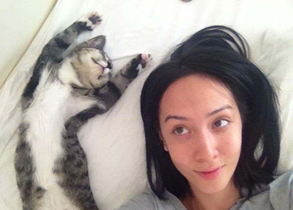 Just yesterday, she paid a visit to see the cat. "She's gotten bigger! Still stays on my lap," she added.
