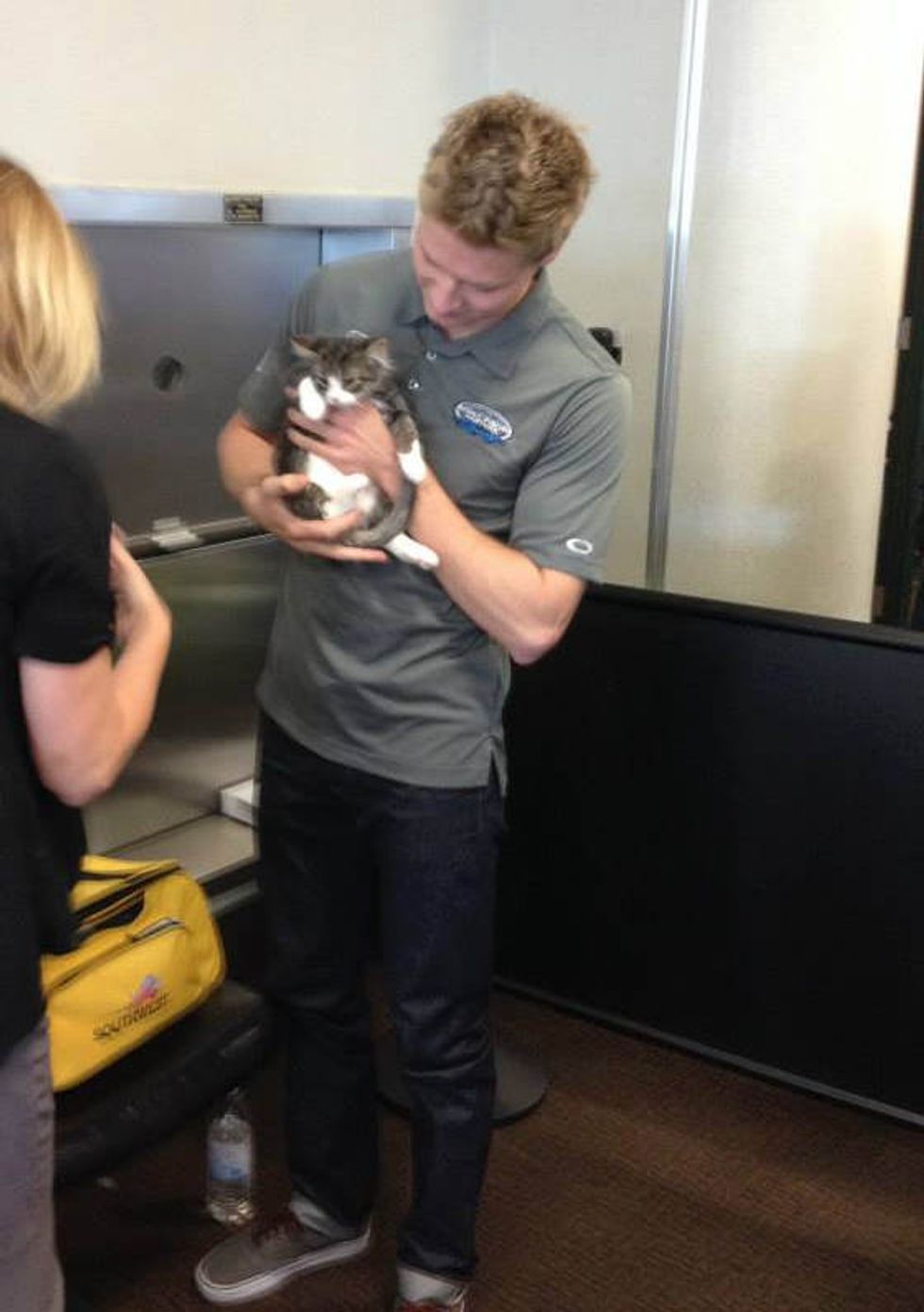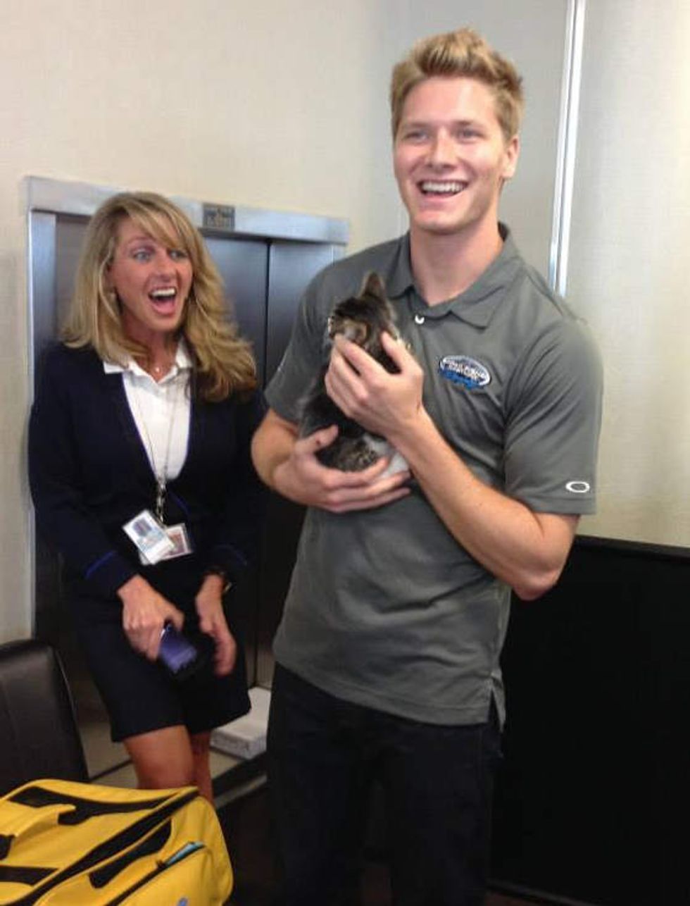 Yesterday, they flew MJ the kitten to reunite with Josef.