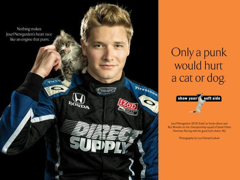 IndyCar driver Josef Newgarden fell in love with a tiny grey kitten from the Baltimore Animal Rescue and Care Shelter (BARCS) when he posed for the city's "Show Your Soft Side" anti-animal abuse campaign. Yesterday, he reunited with MJ the kitten, adopted him and became his forever human.