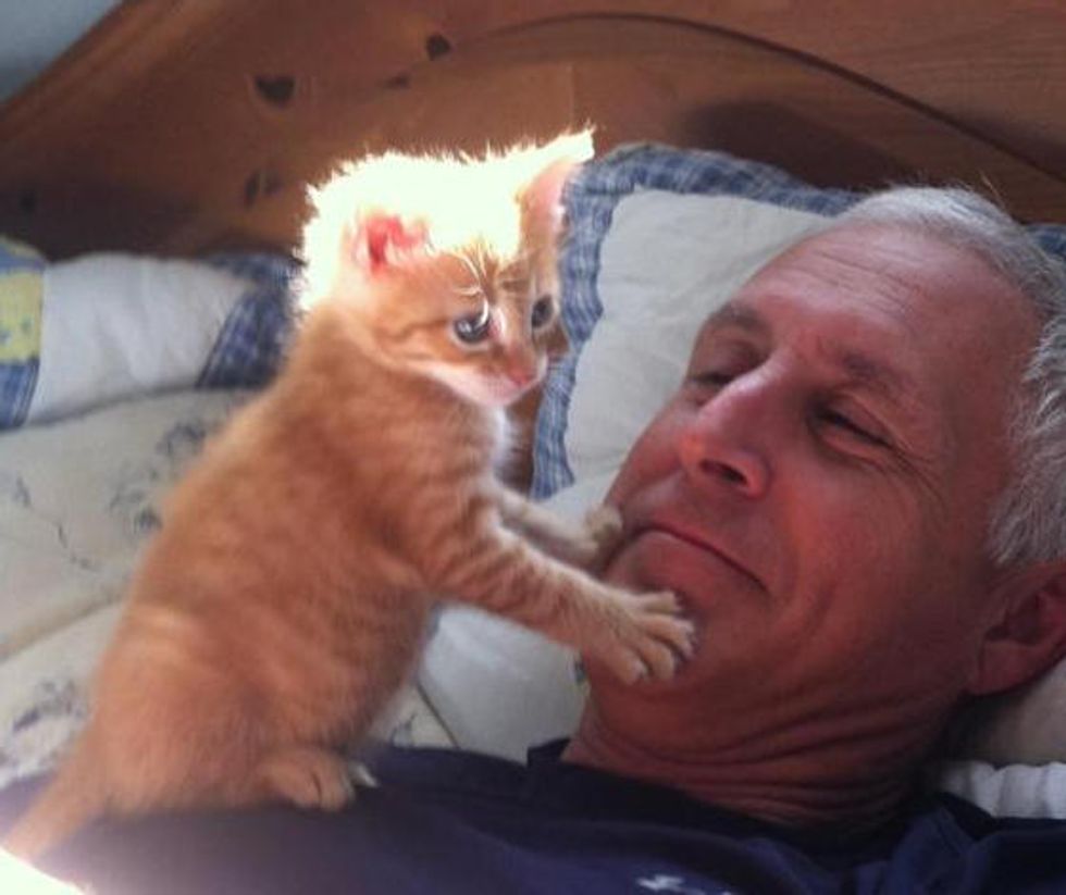 When little Simba got on his chest and hung onto his face, it was a bonding moment for the father and his new buddy.