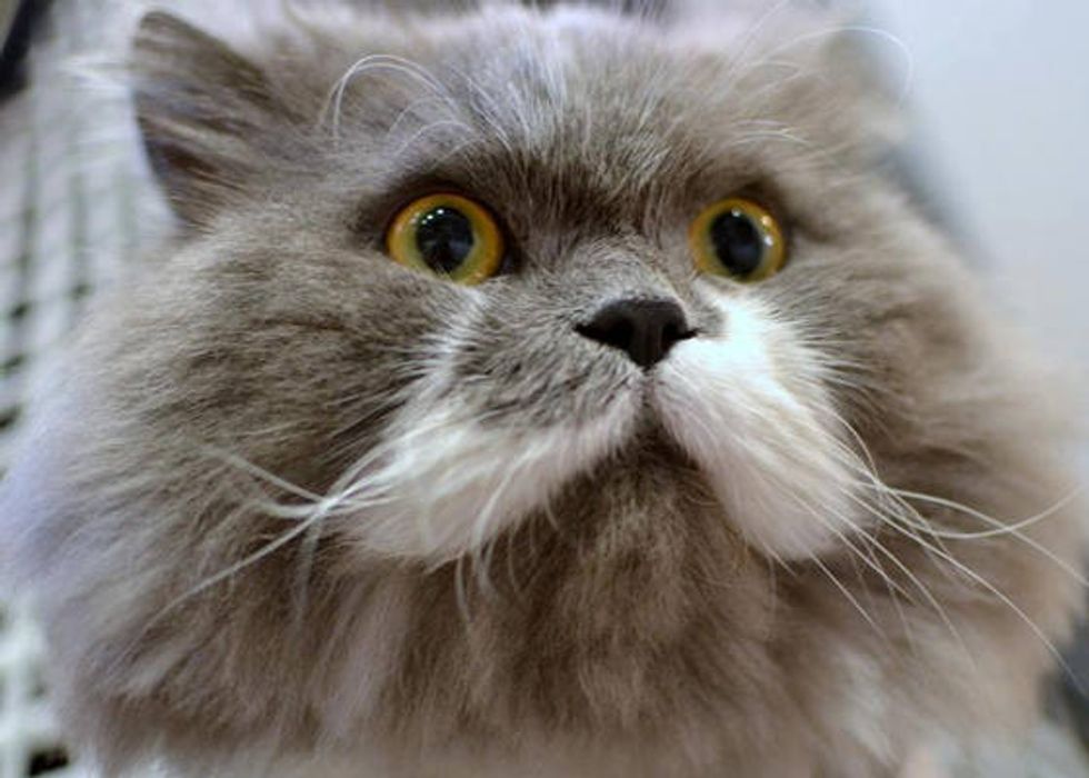 A dapper cat named Owlbert who wears a finely groomed mustache and looks like an owl.