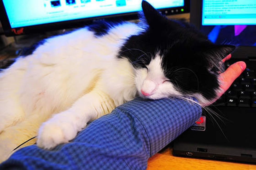 While Matt was helping Robochan find a home, he fell in love with the little cow kitty and the next thing he knew, he became Robochan's forever human.