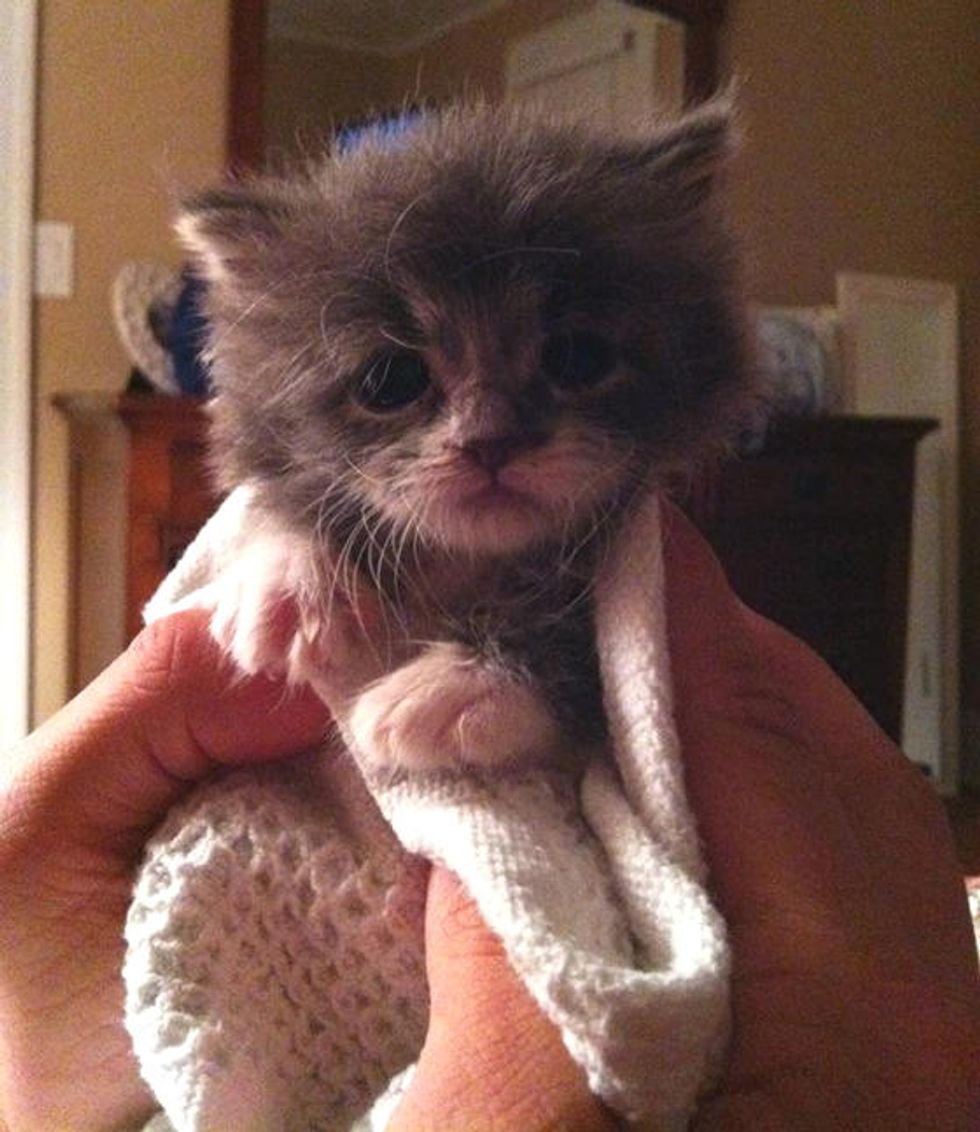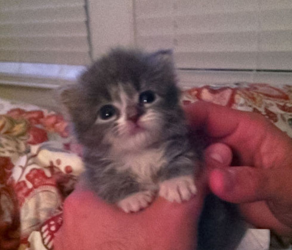 Minou was still a tiny bitty one when they found her as a stray. Her human brought her into their home and she was welcomed by a gentle giant who showered her with kisses. "The kitten became fast friends with their St. Bernard," reddit user Ilikebabyanimalswee wrote.