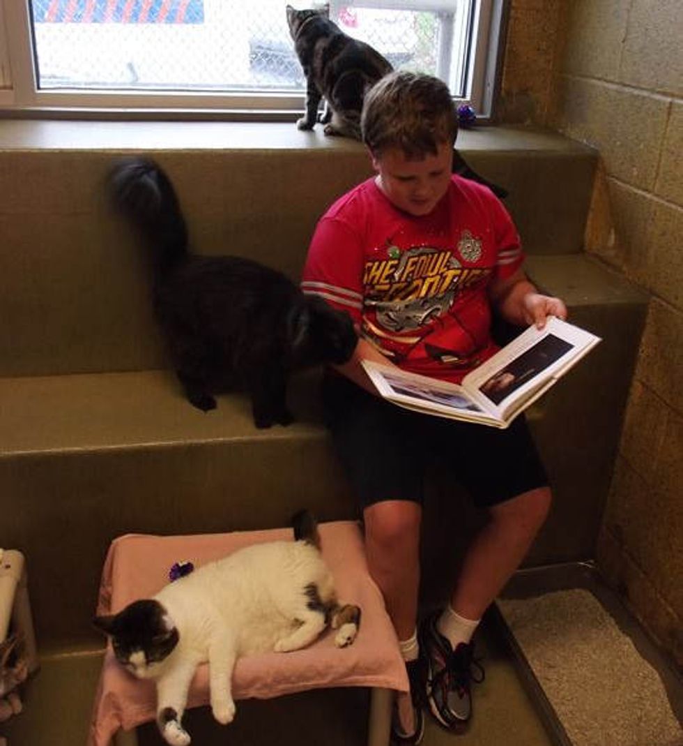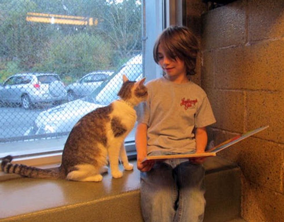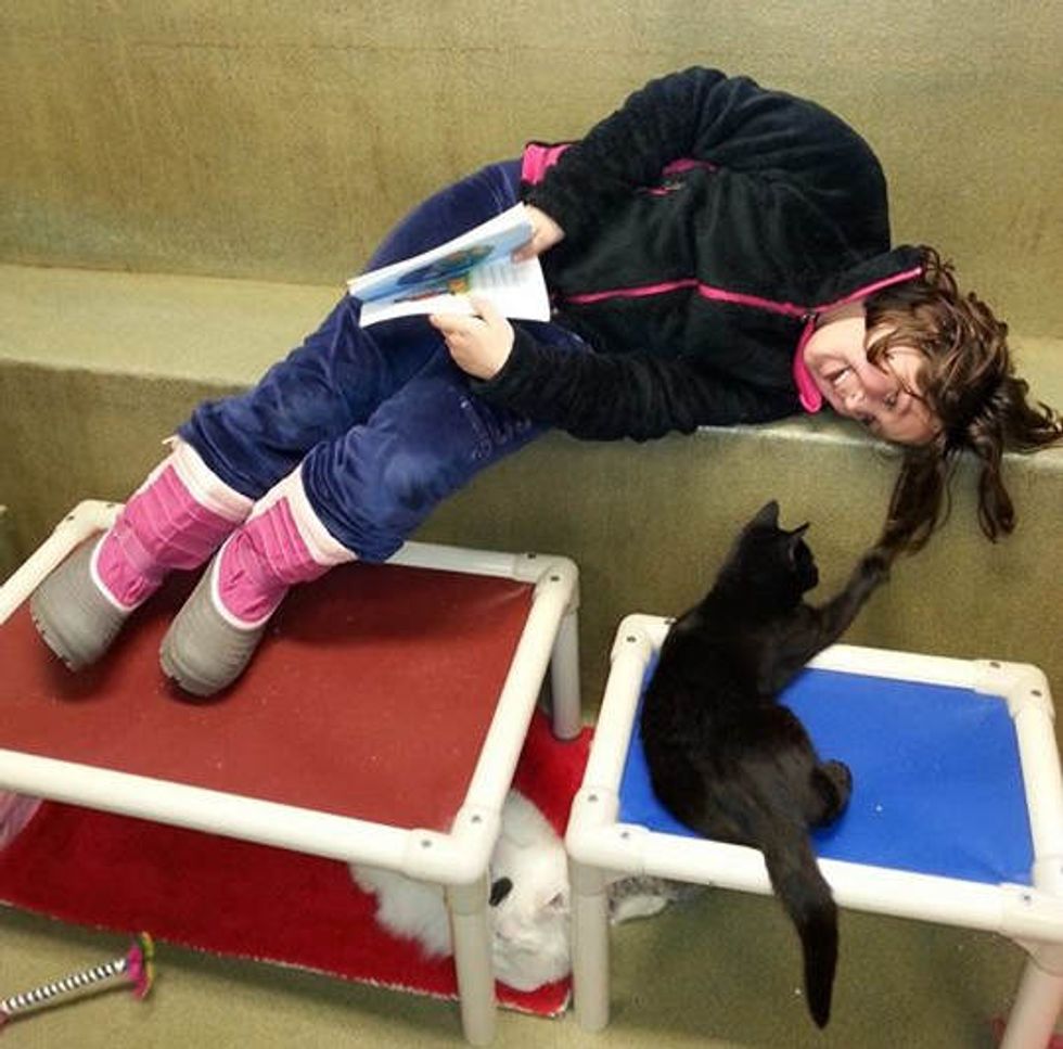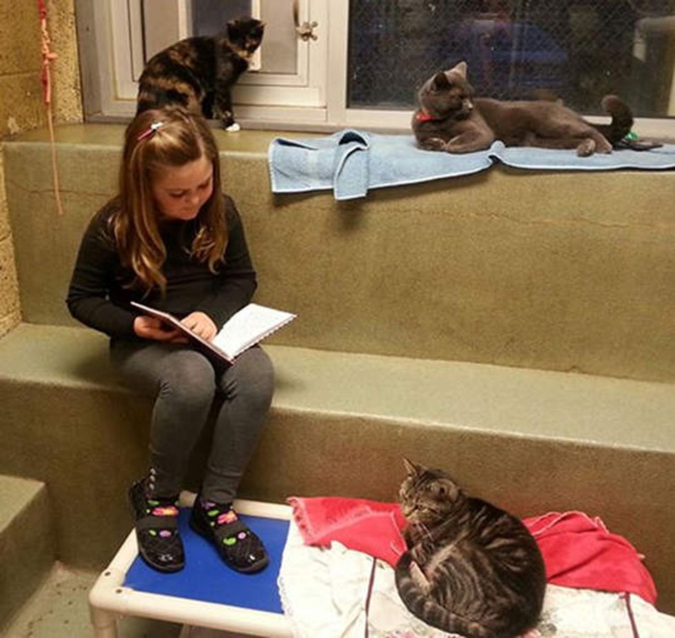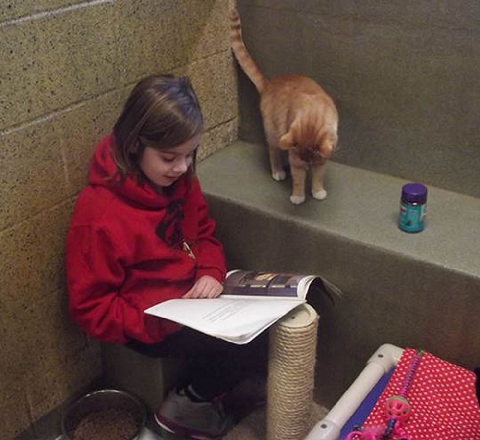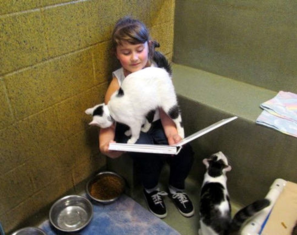 At Animal Rescue League of Berks County, children can read to shelter cats to soothe them. The cats adore them and are always delighted to have these little humans there to keep them company.