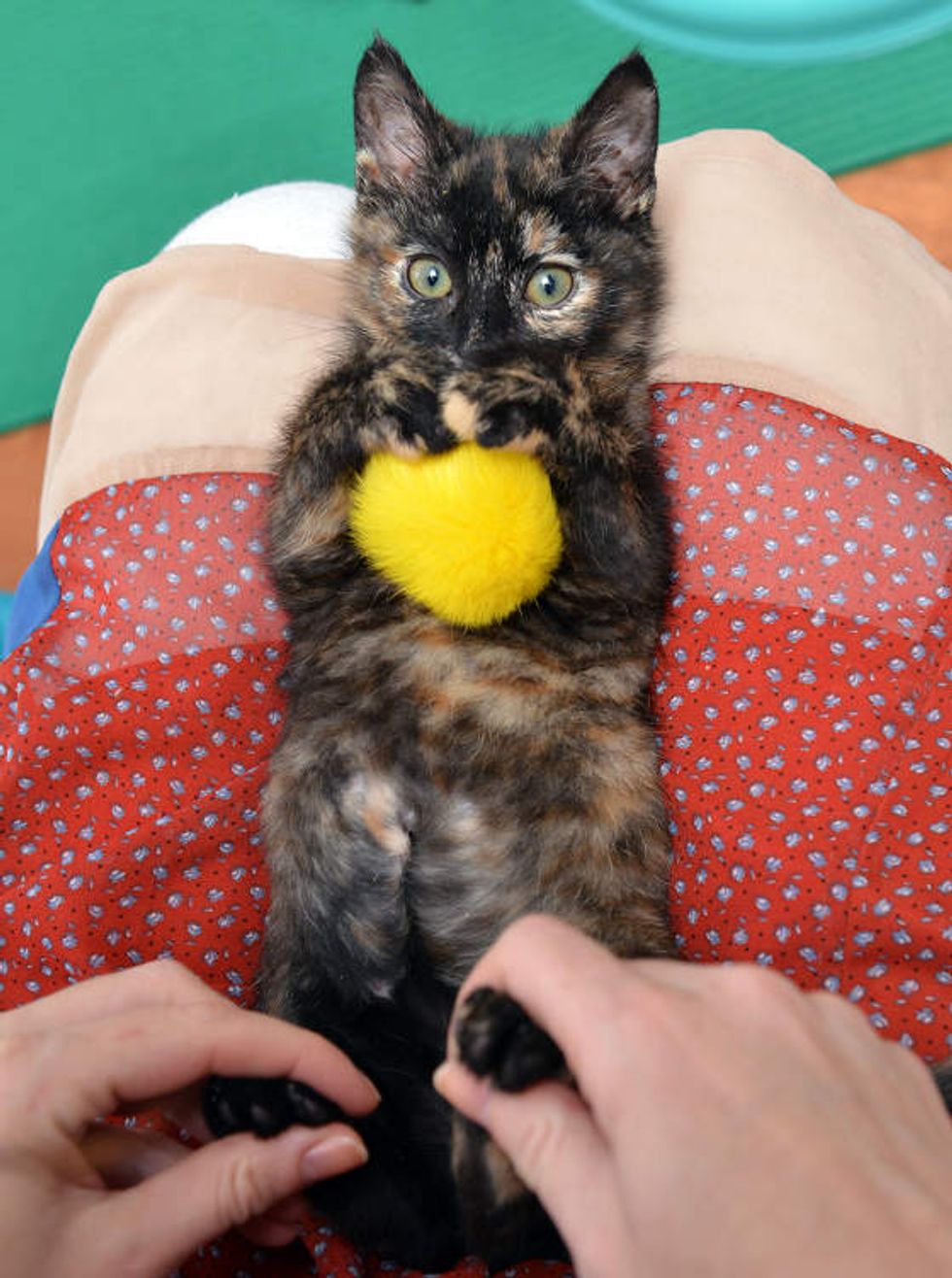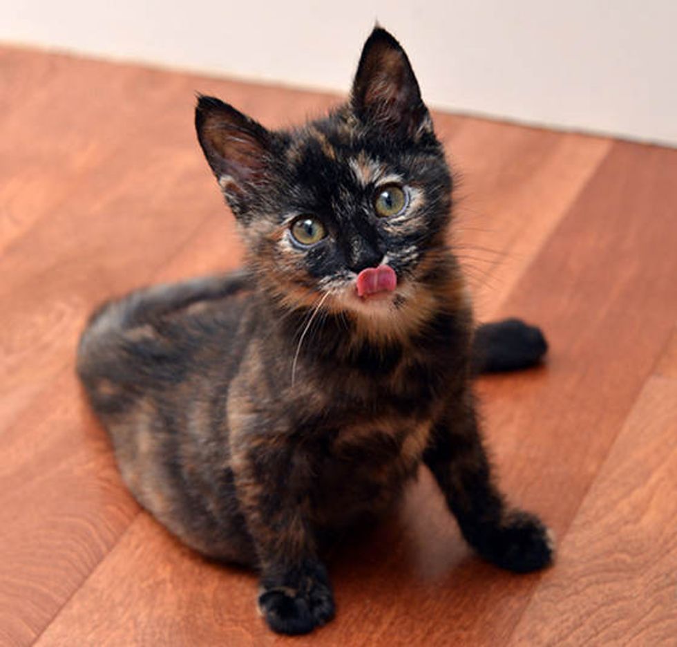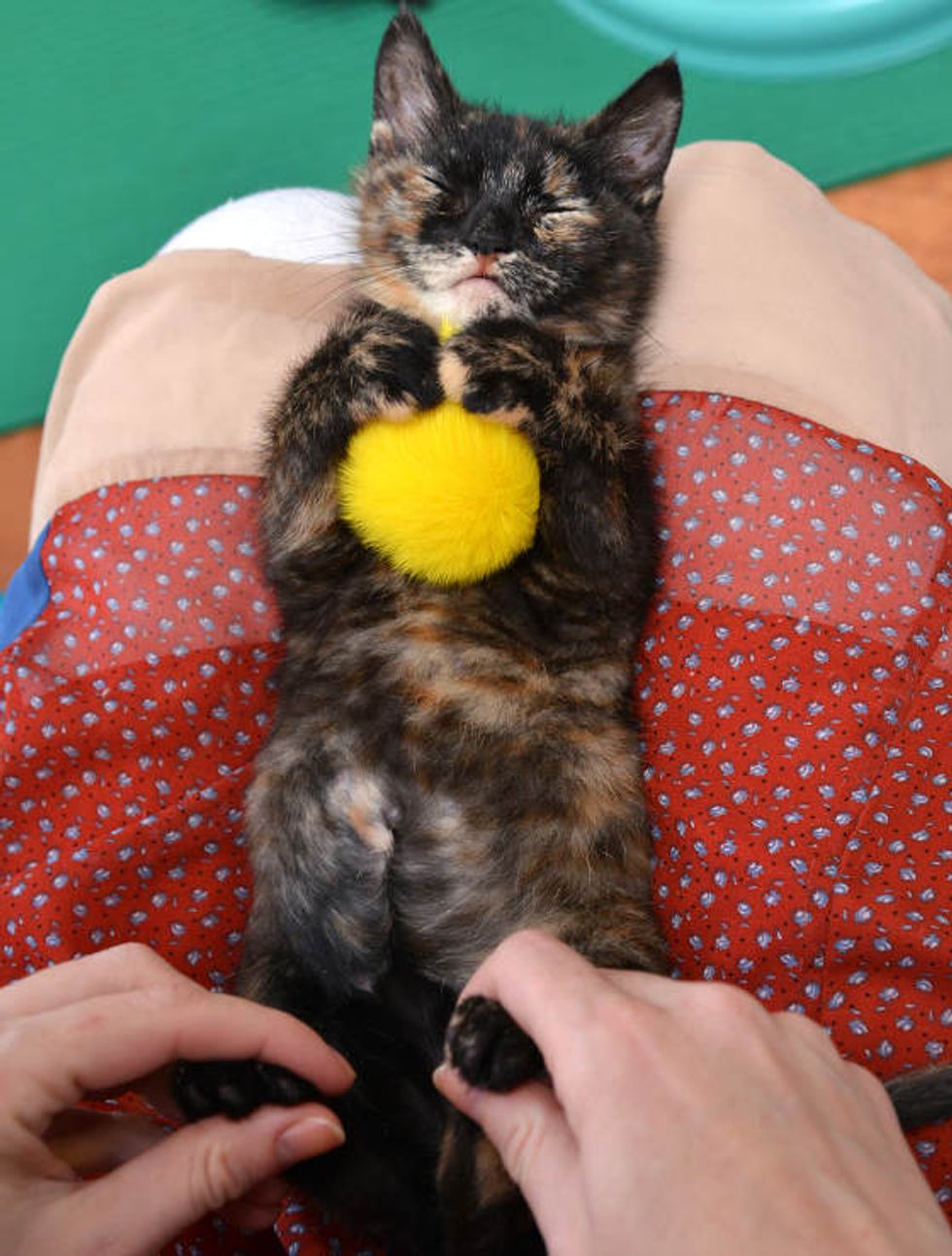 Stockton is a very brave and determined little tortie cat who hopes that someday she will be able to walk like other cats, and that day is drawing near.