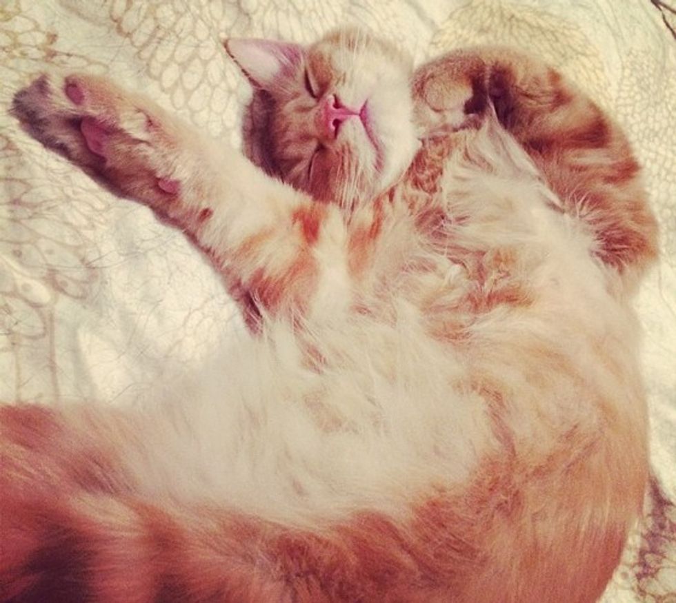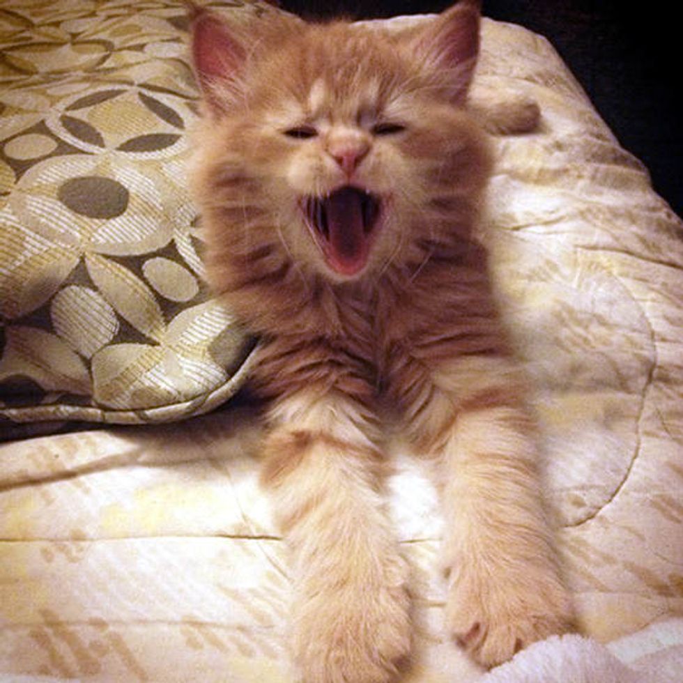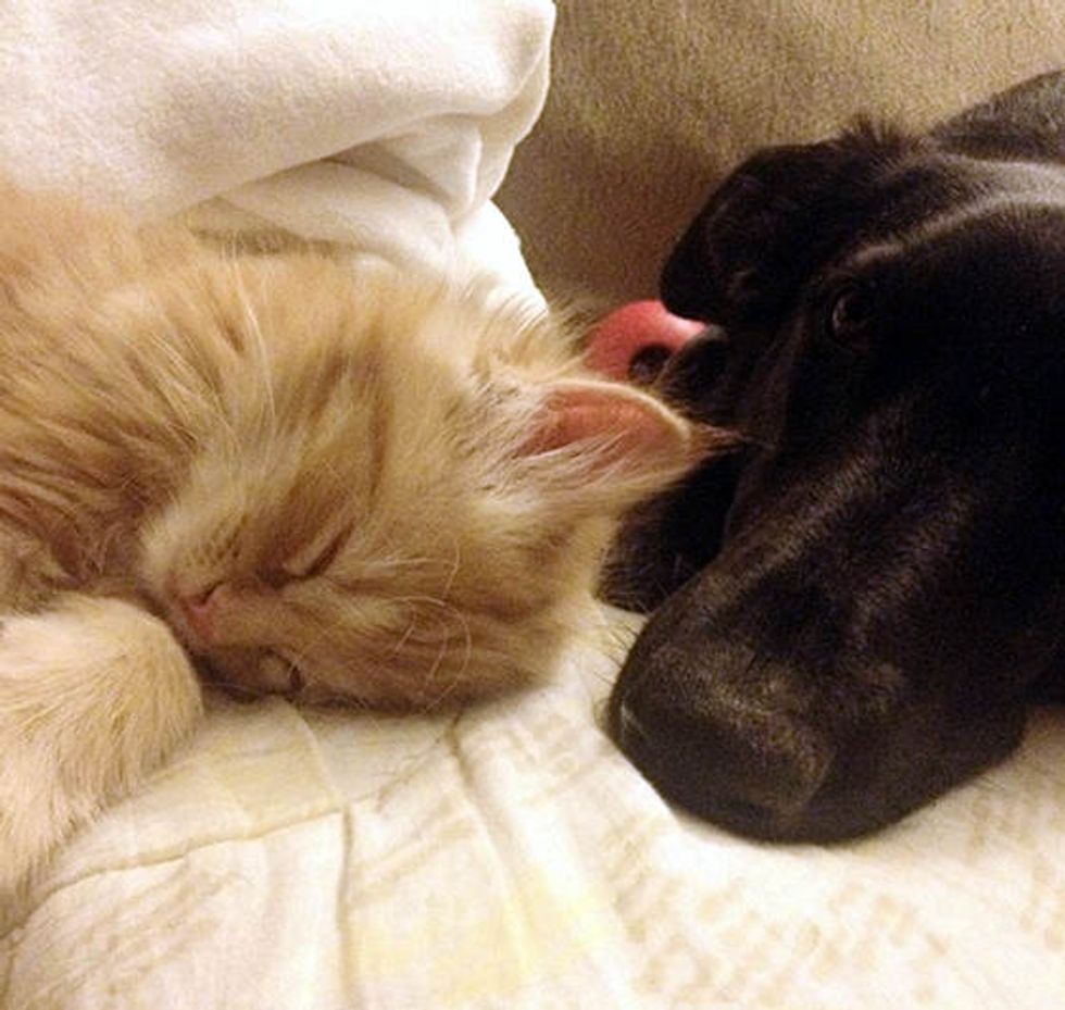 She stayed up through many sleepless nights looking after the little ginger kitten, feeding him round the clock while taking care of her own furry gang.