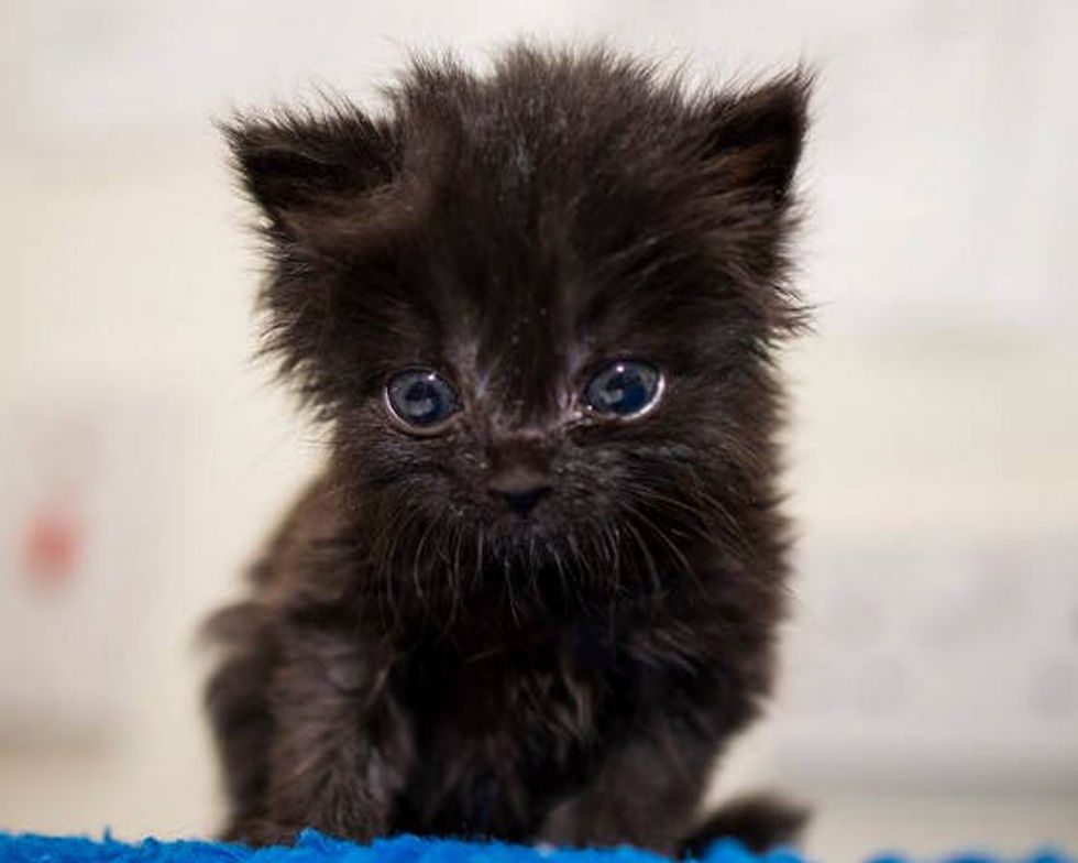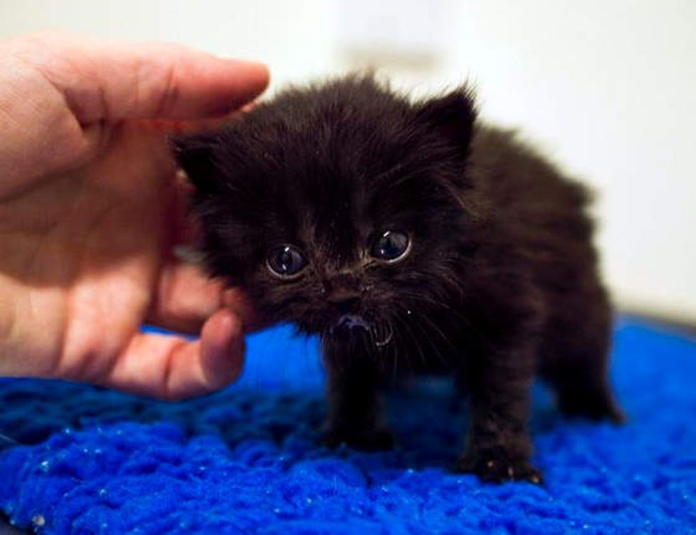 Deputy Bethan of Cats Protection Bridgend Adoption Center has been caring for the tiny ball of fur, bottle feeding him round the clock to give him every chance of survival.
