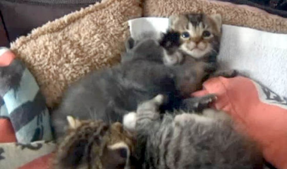 The kittens probably hadn’t eaten for a day or so, so they began to feed the babies around the clock. "They were very weak, they couldn’t even stand. They were very limp and lifeless," said office manager Karen Rideg via nbcnewyork.
