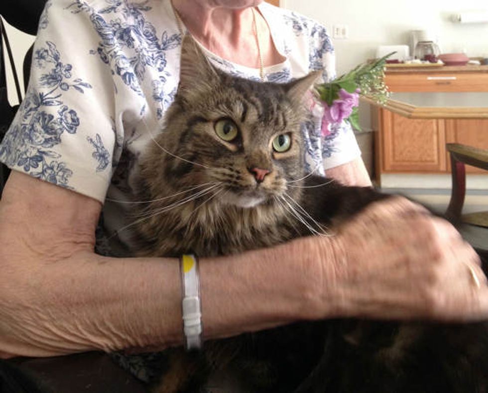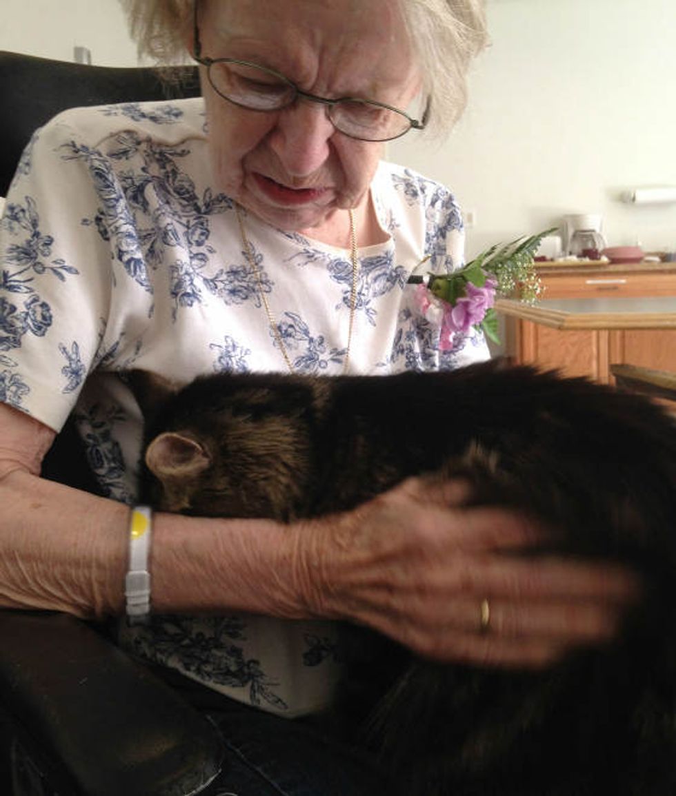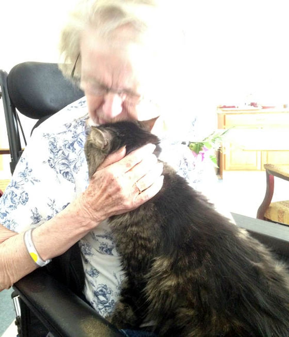 "My mom's friend had a stroke recently. She's recovering well, but hadn't seen her cat Mitzy in almost three weeks. We finally were able to bring Mitzy in to the rehab where she was staying - once we let her out of the crate, Mitzy wouldn't get off her lap for anything."