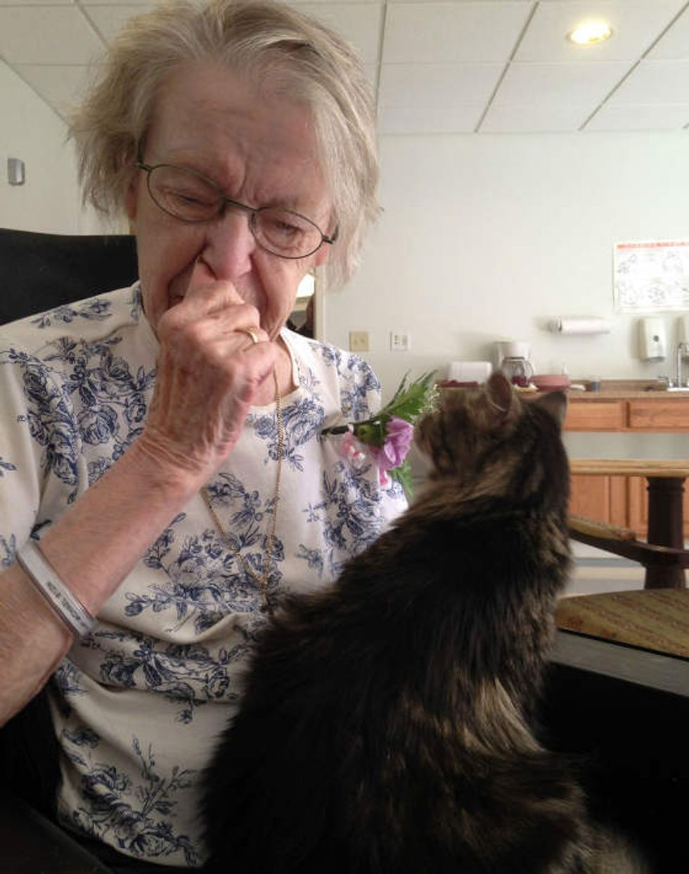 "We managed to bring her kitty in for a visit - they were inseparable."