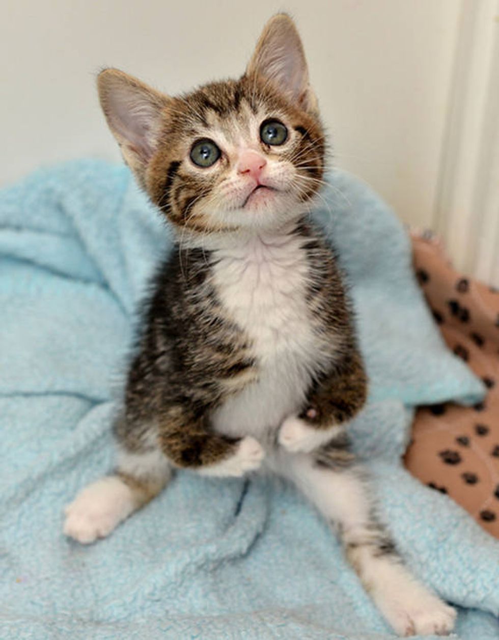 Meet Kanga, a sweet, playful girl with bent legs like what we’ve seen in kitties like Harvey. Despite those short front legs, she is very active and doesn’t think she’s any different.