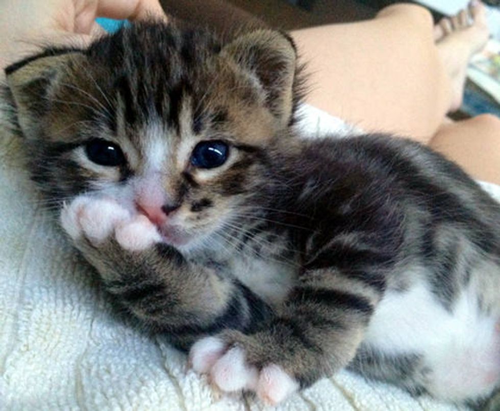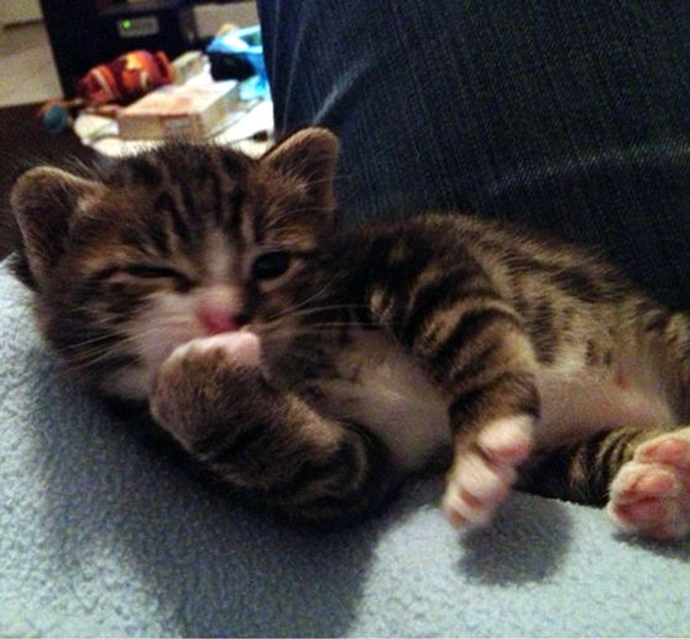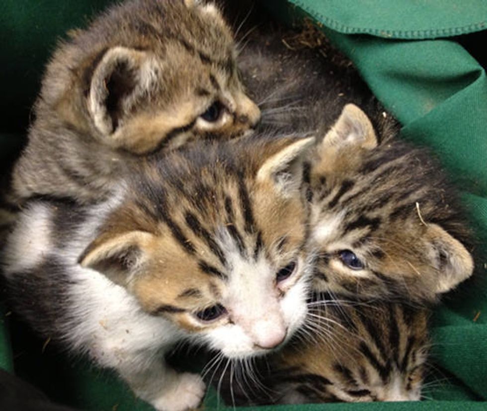 Oliver and his three siblings were rejected by their feral mother and found in a wood pile by the employees that worked there.