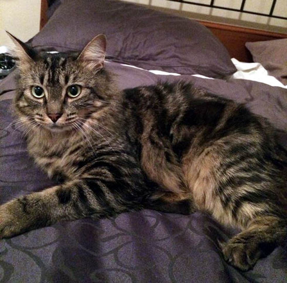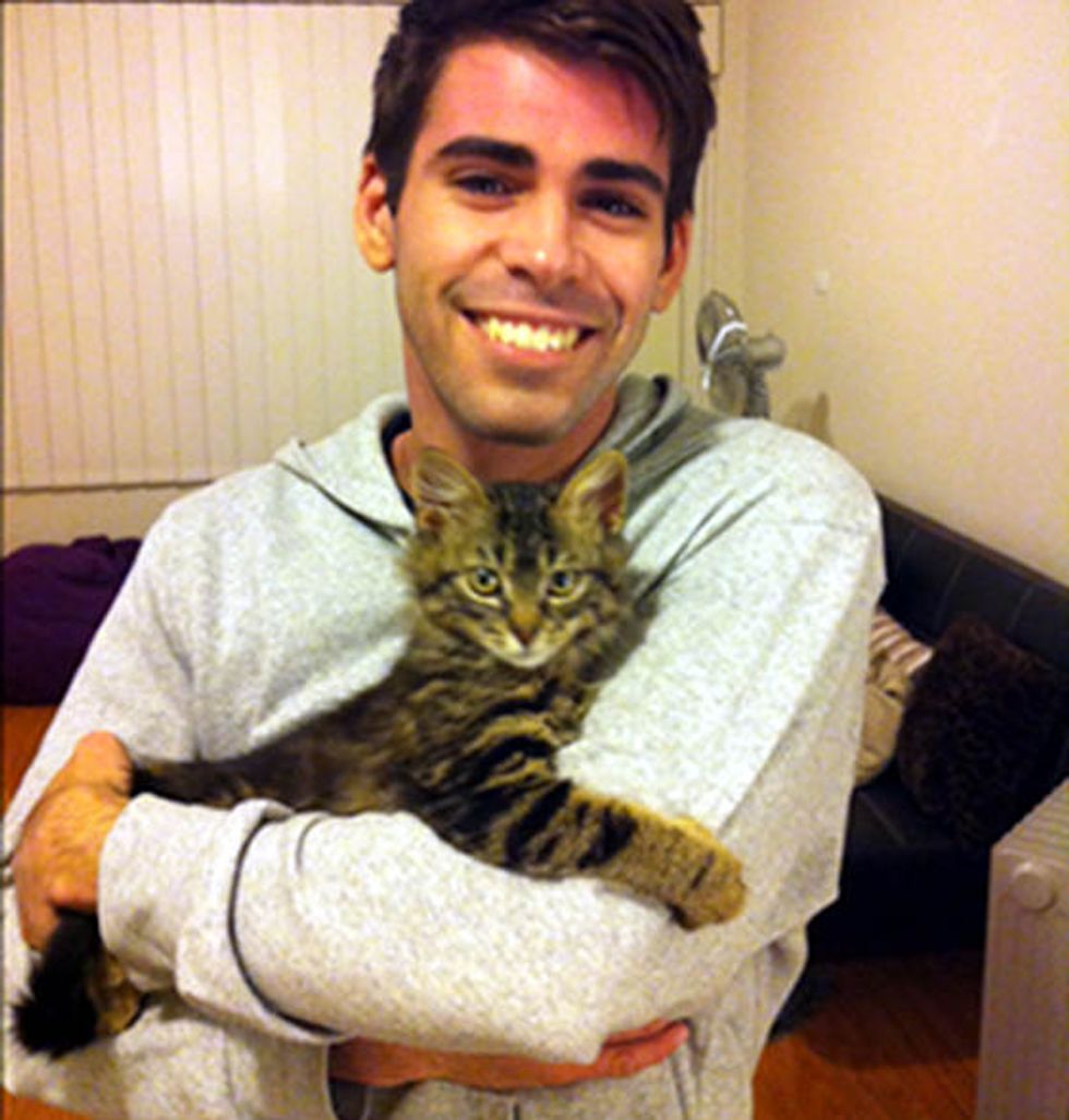 Benjamin had been feeding this tabby kitten he found near an office he worked at. On his last day at the office, he knew he had to rescue the kitten before others took him to the pound. So he did.
