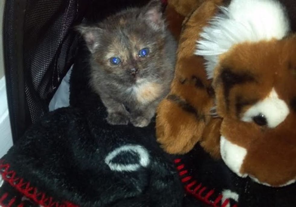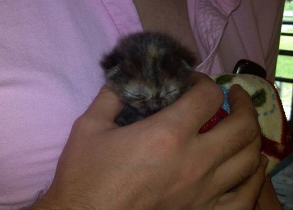 Maymie was so tiny that no one was sure if she would make it, but the little kitty was a fighter. "Coincidentally, my husband and I were looking for a kitten to adopt at the same time she was found, and we knew one of the workers at the park where she was rescued," said Christina M. Carrell to Love Meow.
