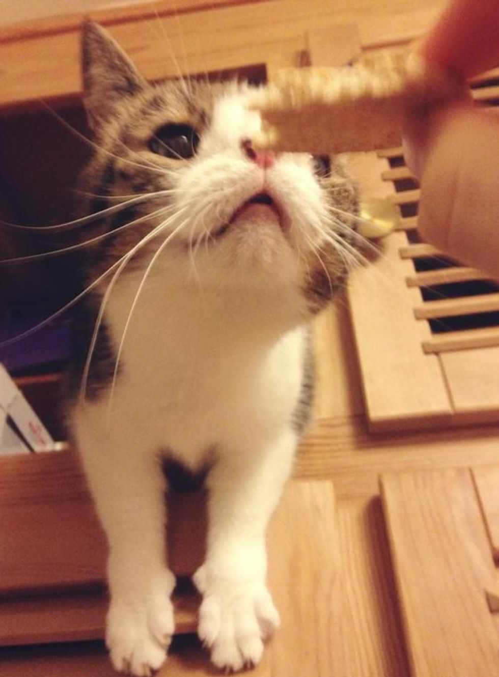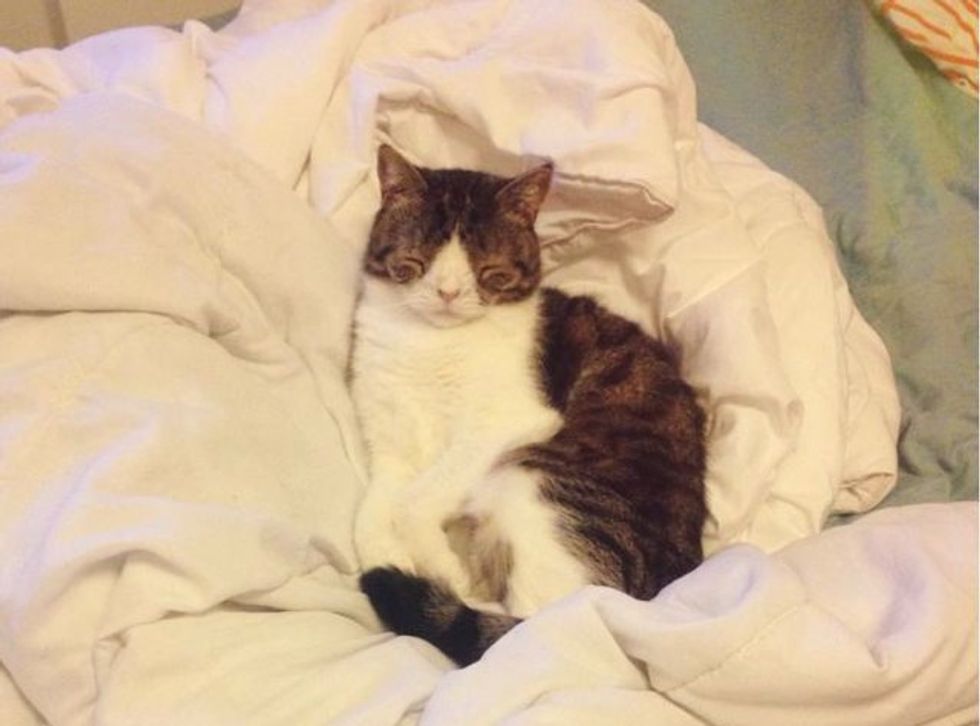 "The first time we met Monty, there was no doubt in our minds that he was to come live with us. His special appearance makes him look so incredibly cute, but his personality, he showed from the very beginning, is rare as a diamond! Monty shared a room with some of the other cats from the animal shelter and even though a few of them acted a little aggressive and lashed out at him, Monty continued to lay calm and quiet, uneager to pick a fight."