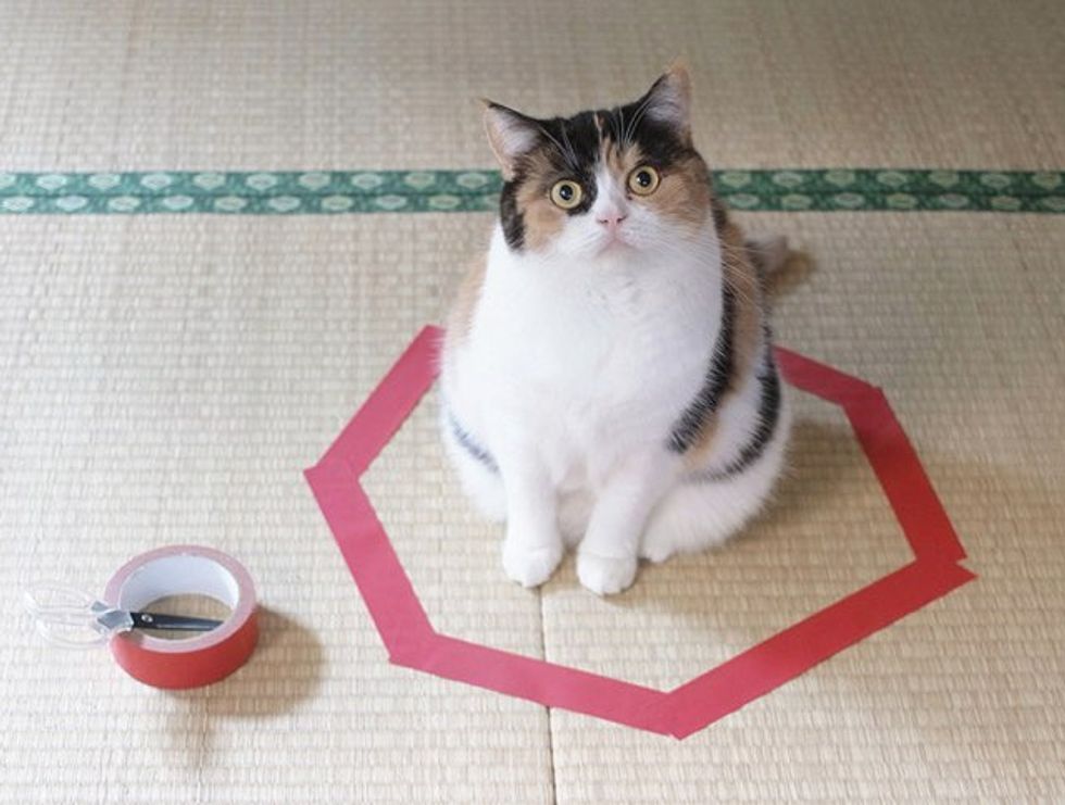 This kitty's human discovered that they could create a cat trap simply by drawing a circle on the floor. These 'cat traps' have been very successful. (guremike.jp)