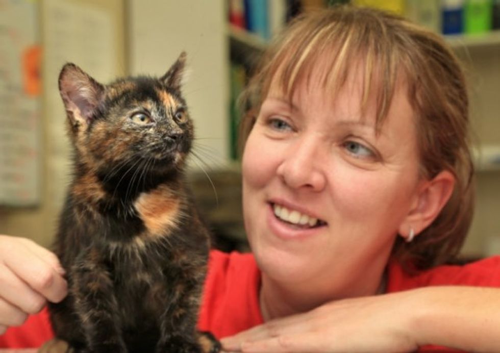 "It’s very rare to get a male," said Nicola Zelent of Lothian Cat Rescue in Bonnyrigg, Midlothian Scotland. "He's the first tortie boy we've had at LCR in our 35 year history, and he is the first of his kind which our vets have seen too!"