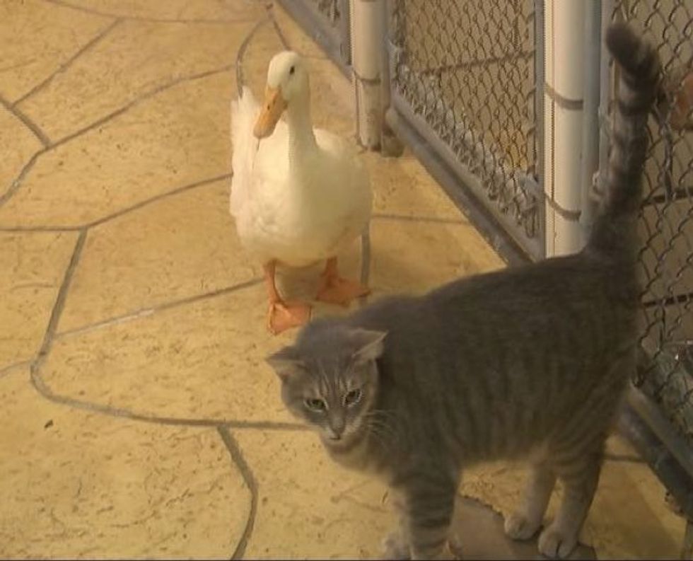 WATCH VIDEO: Grayson the cat and Peepers the duck, an unlikely pair