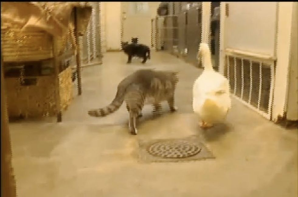 "The cat took the duck under his wing and raised her and they’re best friends."