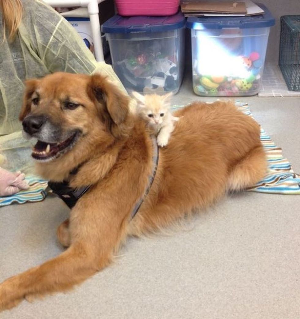 "By socializing kittens with dogs like Boots early in life, we are able to open up an entirely new world of potential home environments to that kitten," the shelter wrote on their blog.