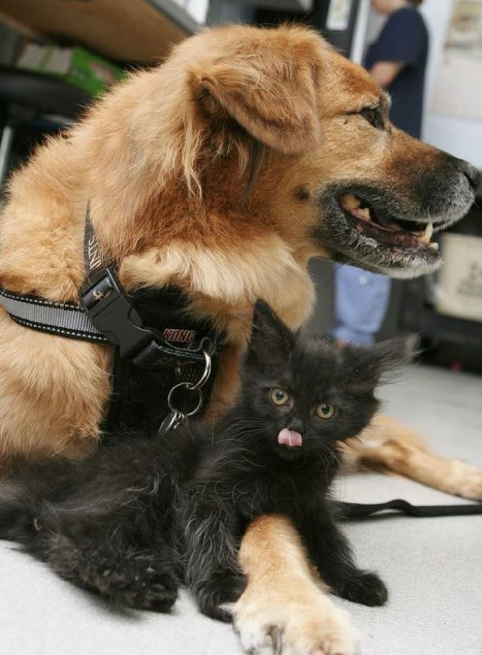These tiny orphan kittens from the Arizona Humane Society now have a dog nanny, Boots, a 12-year-old Chow/Golden Retriever mix and Hurricane Katrina survivor.