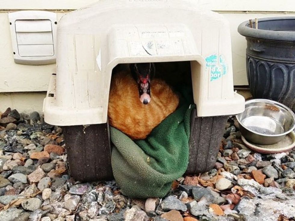 Every morning when the cats come out to the yard, they head right to Penny's nest.