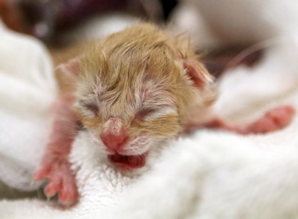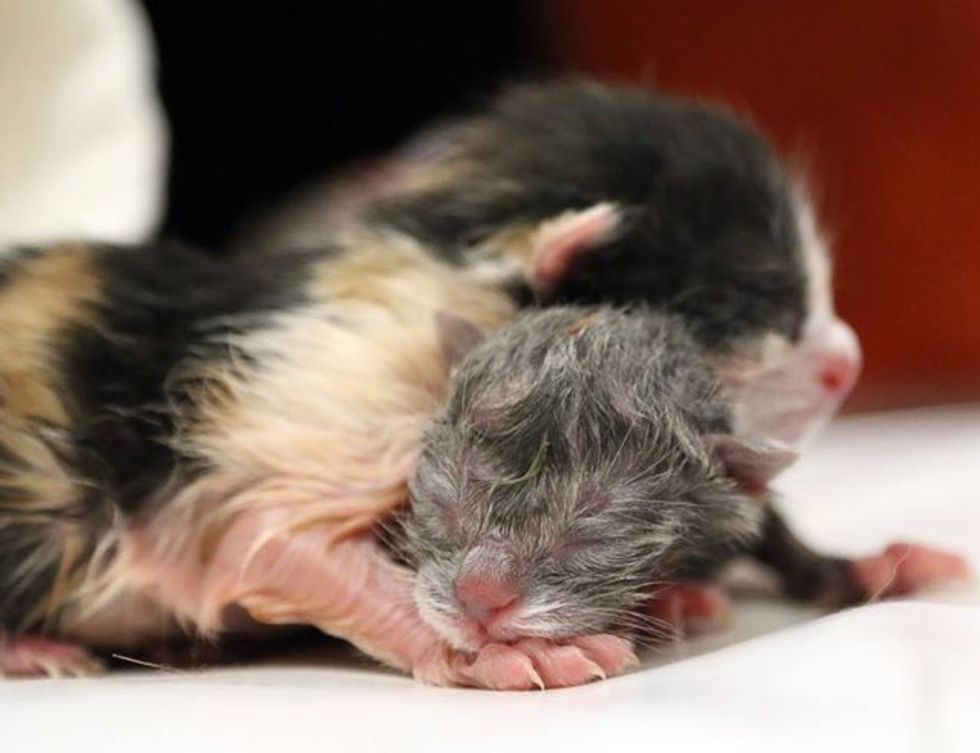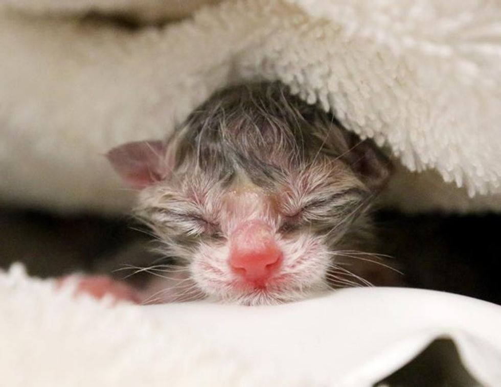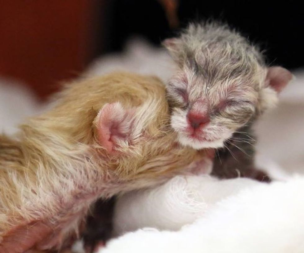 A very pregnant cat was saved just in time from the streets and cold. The next day, she gave birth to a litter of five very tiny babies.