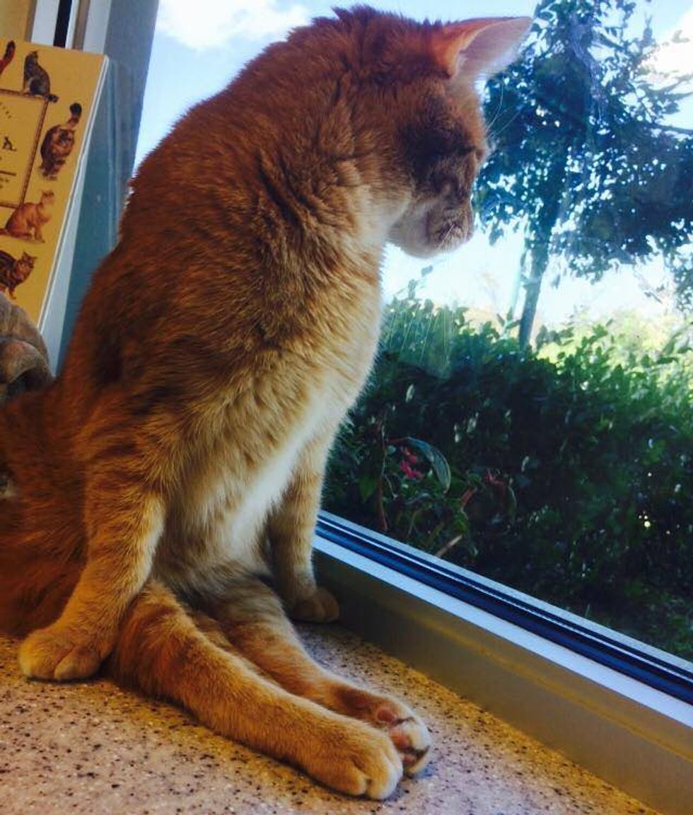 Sometimes he likes to look out the window and enjoy some cat entertainment.
