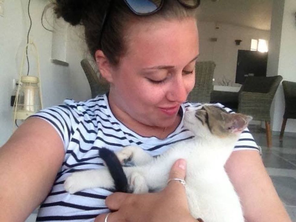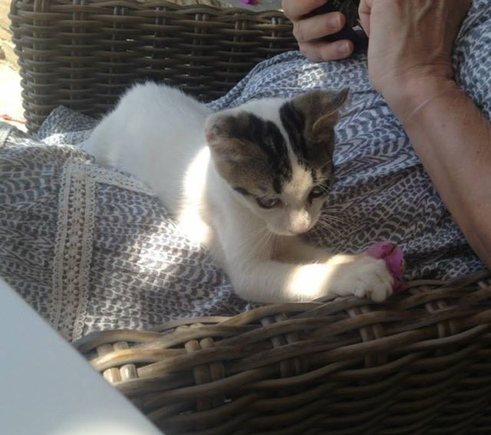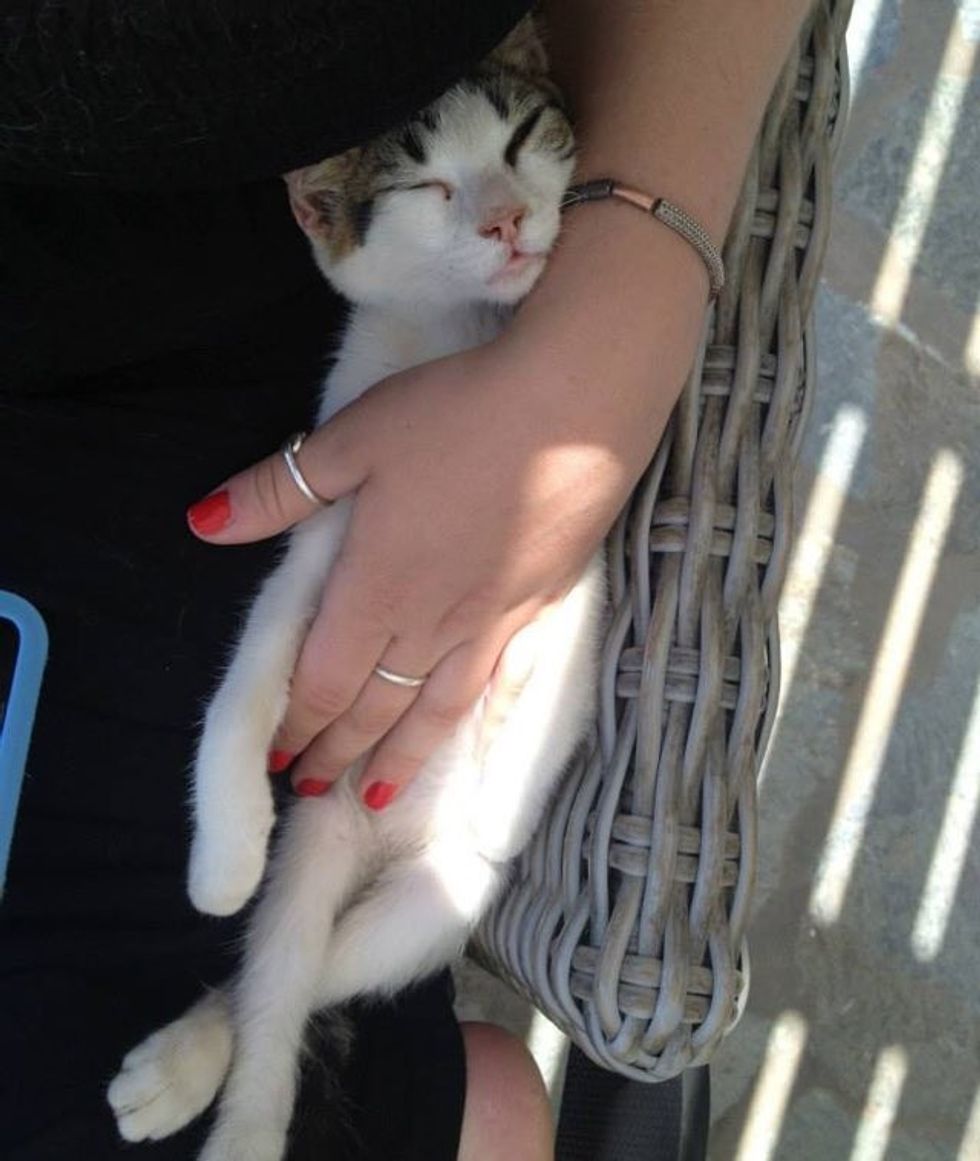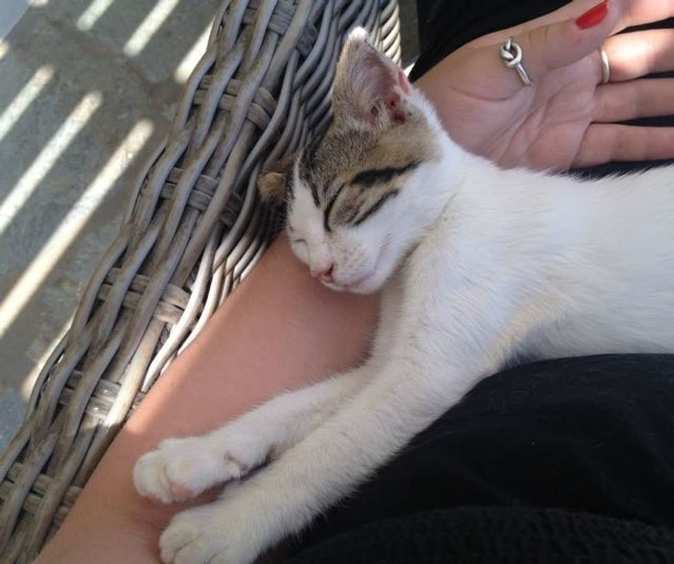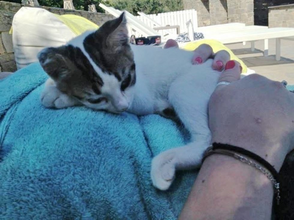 A little kitten from a hotel in Greece charms her way into the hearts of many travelers.