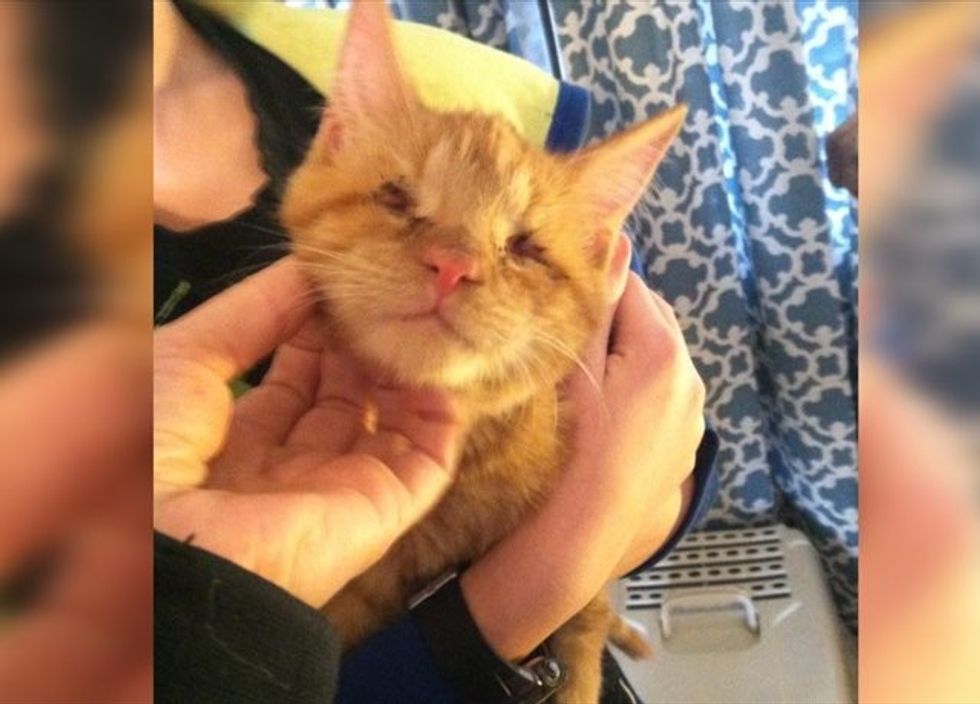 This is Murdoch the cat born without eyes. A 3 year old boy found him in a park.