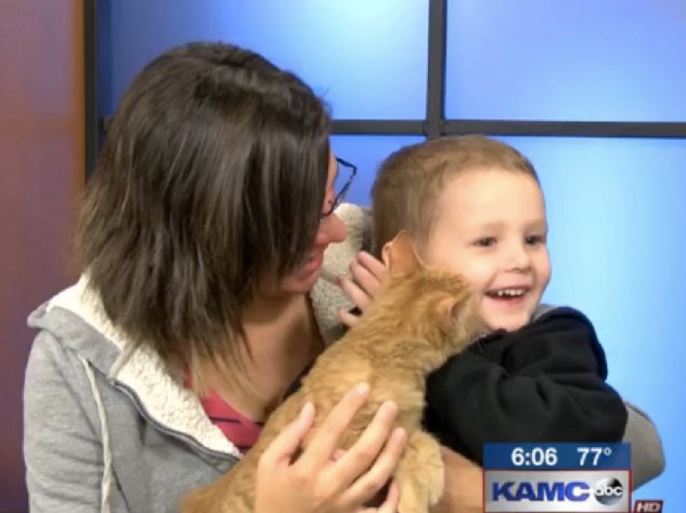 "The cat took off towards him as he was running towards me," Crystal Burton said. "And he looked at me and said, 'Mom I just want to keep the cat'."