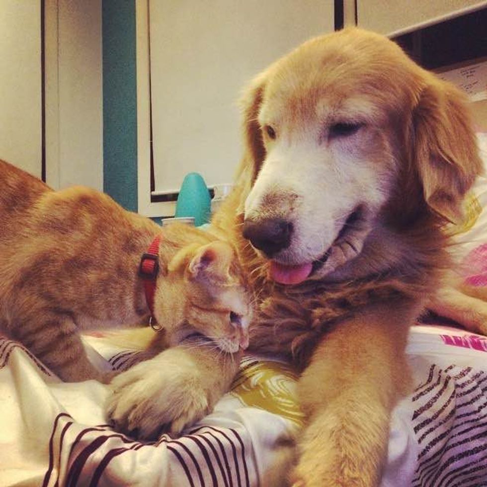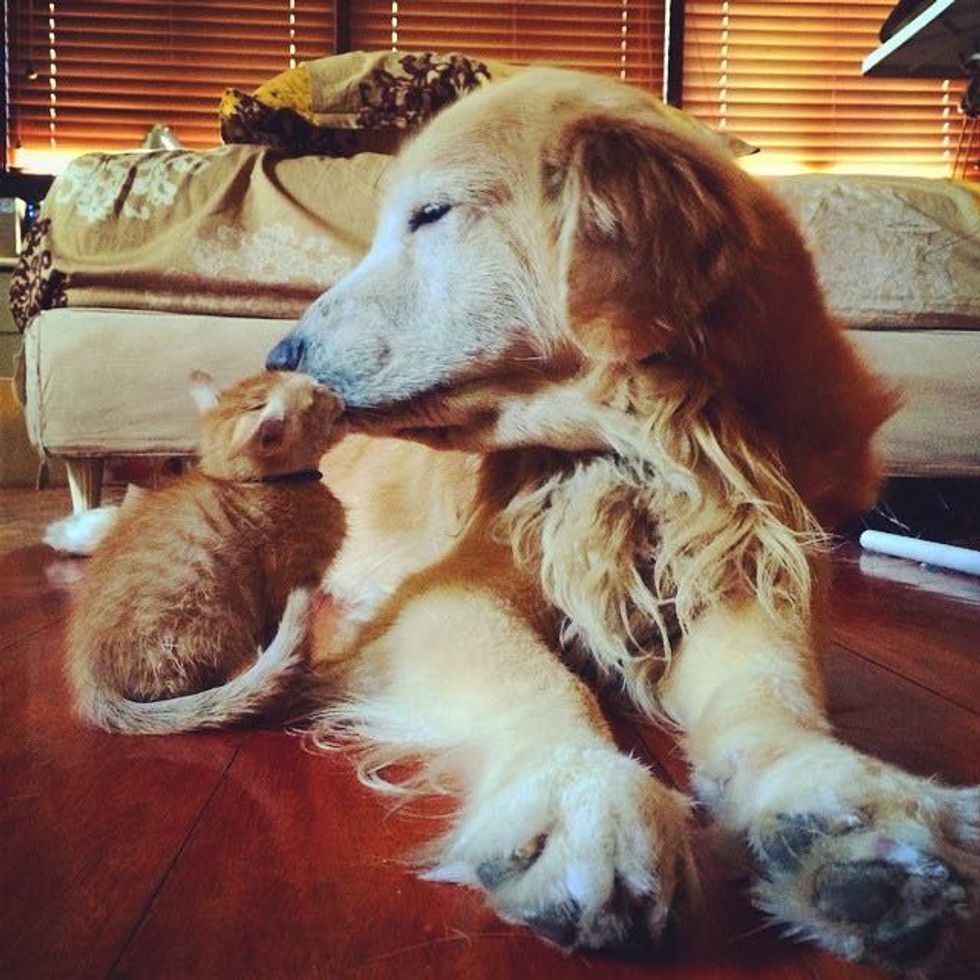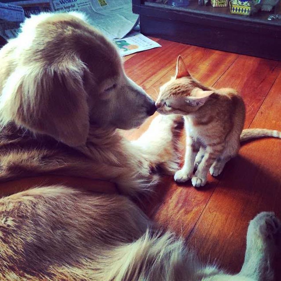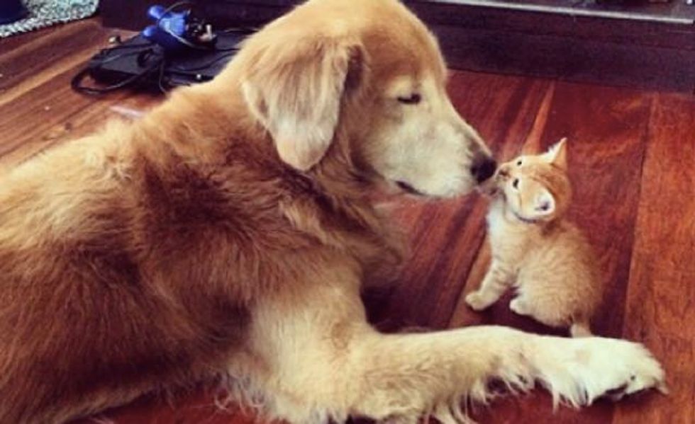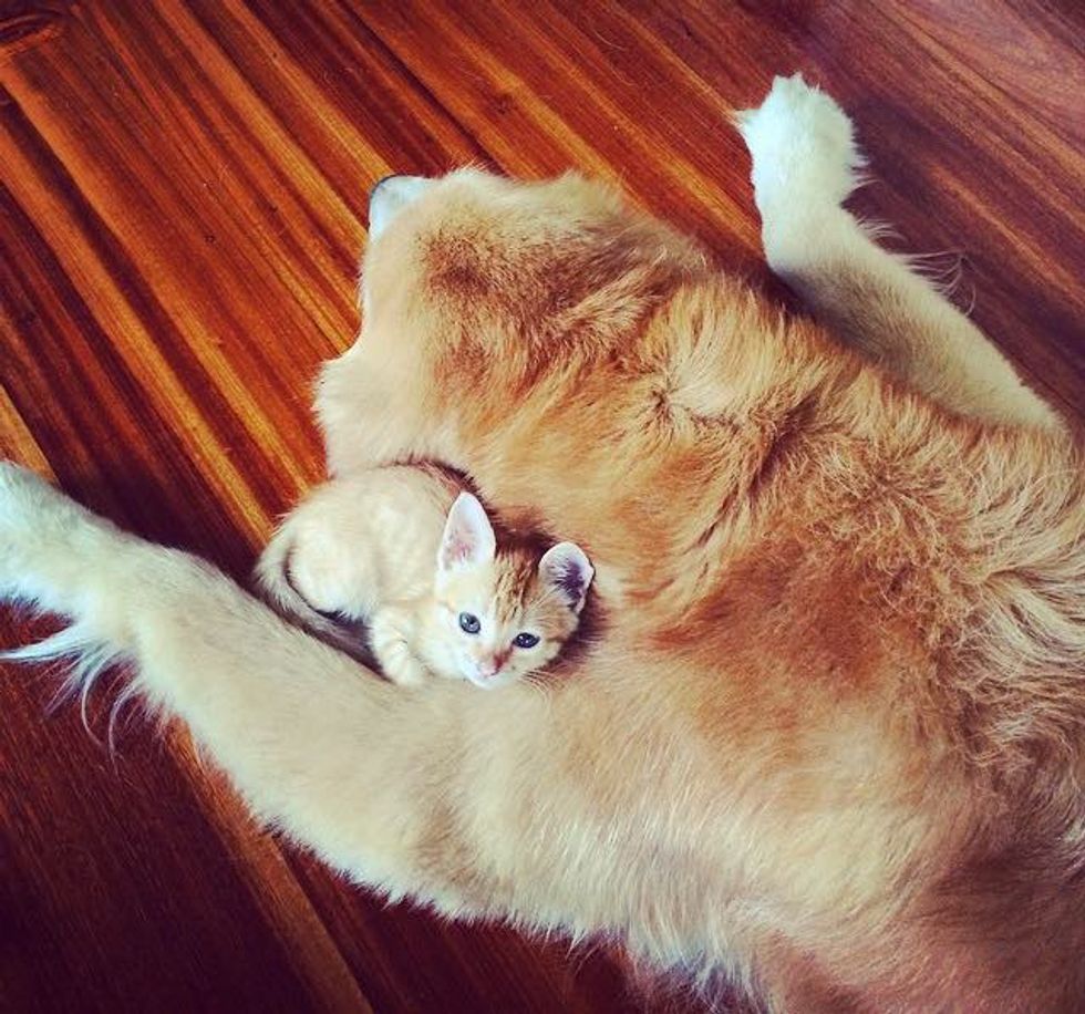 Ever since they rescued Koda the ginger kitten from the bush, Keelo the Golden Retrieve has been inseparable with his little feline friend.